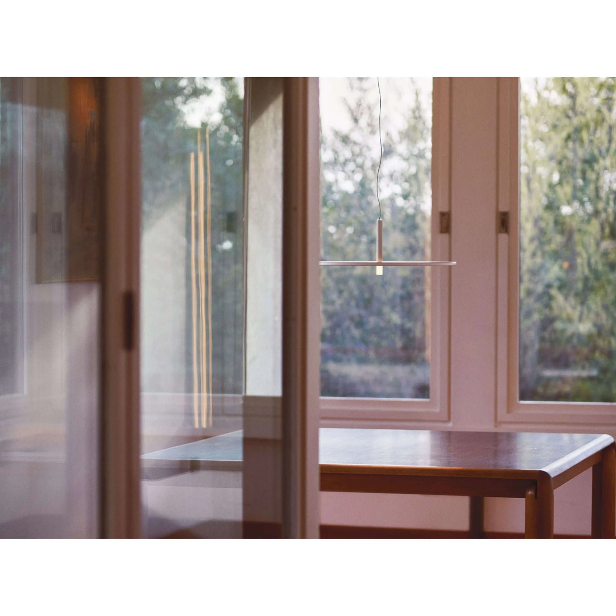 My Circuit Disc is a a suspended lamp with diffused light composed of a slender horizontal disc crossed by a vertical stem with a refined balance of geometries. Matte white painted aluminum body with polycarbonate stem. Silk screened PMMA diffuser. Edge Lighting technology light source (CRI 95 90) and adjustable brightness 10–100%. Usable power cable length 300 cm to be connected to a canopy with matte white finish. Canopy has to be ordered separately, the electronics integrated in the canopy enable use of dimming systems: PUSH dimming, 1-10V, DALI