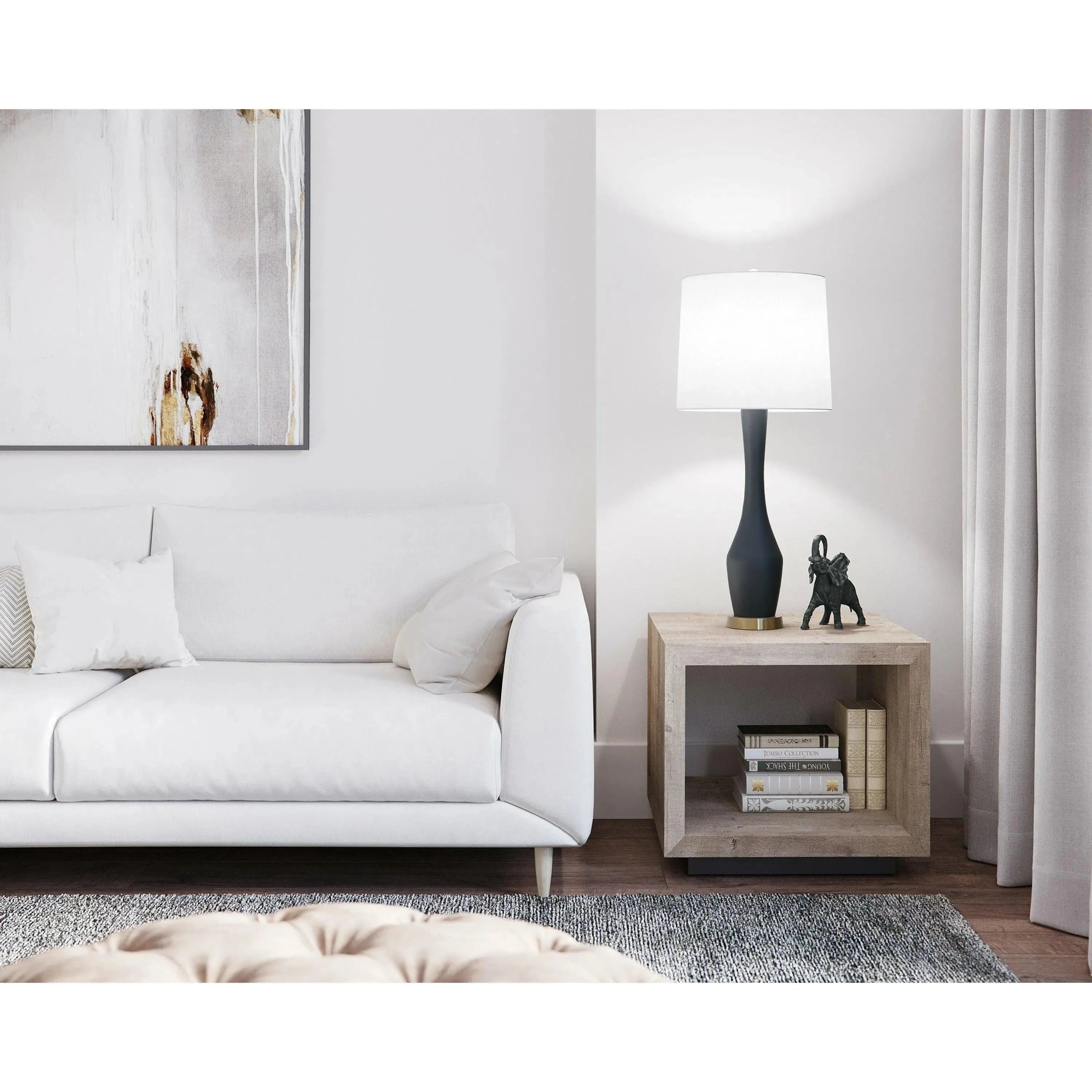Its tall, slim silhouette is delicate, yet it exudes a luxurious vibe. This table lamp wears a rich, black matte finish for a versatile modern statement, and an antique brass base adds an unexpected final touch. Place this table lamp on an entryway console for an impactful welcoming statement. Also available in a pearlescent cream finish and pearlescent blue finish.