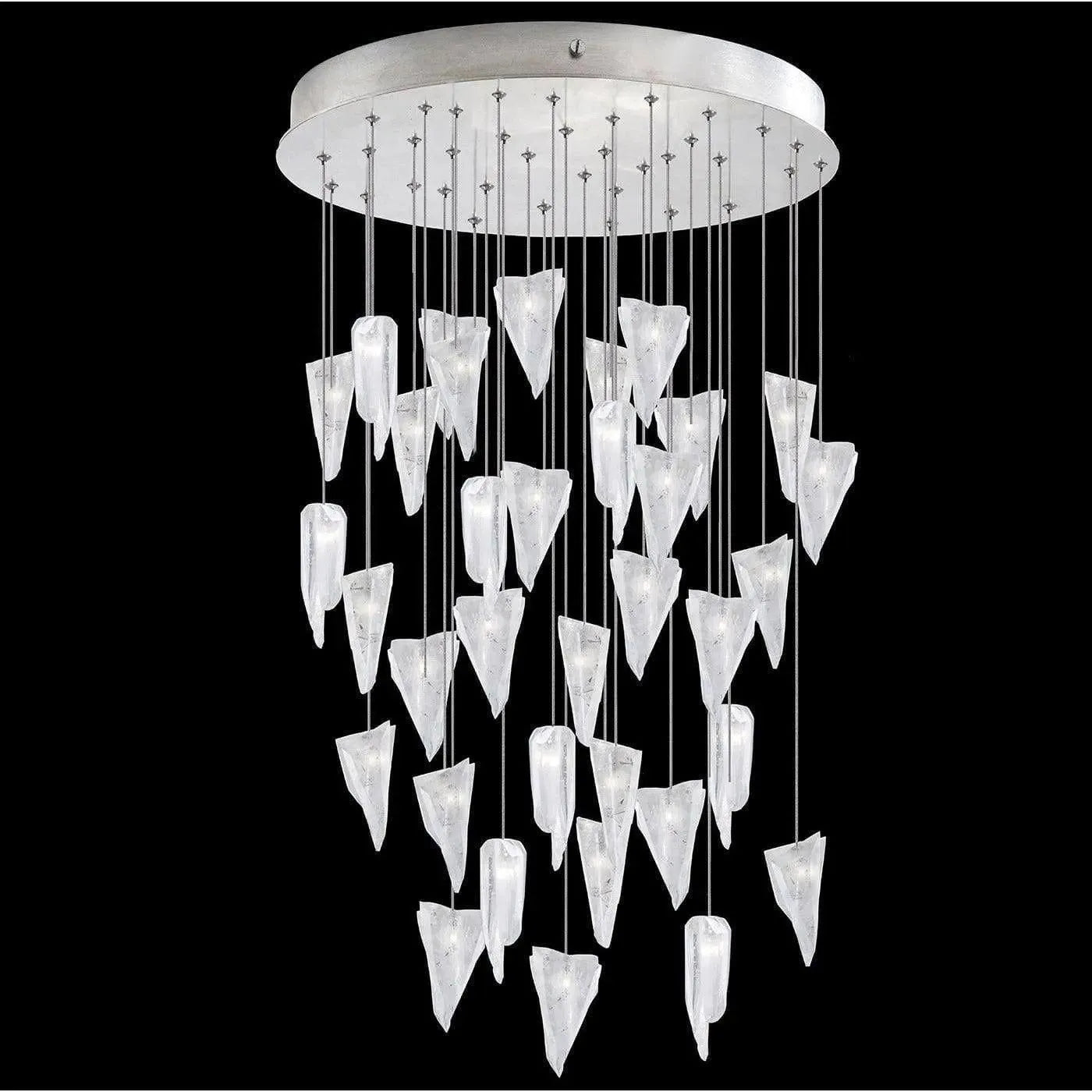 Natural Inspirations 34-Inch 36 Light Pendant reimagines ceiling lighting as a sculptural focal point — a suspended constellation of 36 hand-faceted glass clusters that diffuse warm, layered light. Designed for impact in entryways, double-height foyers, and signature hospitality spaces, it blends form and function with a refined, modern silhouette.