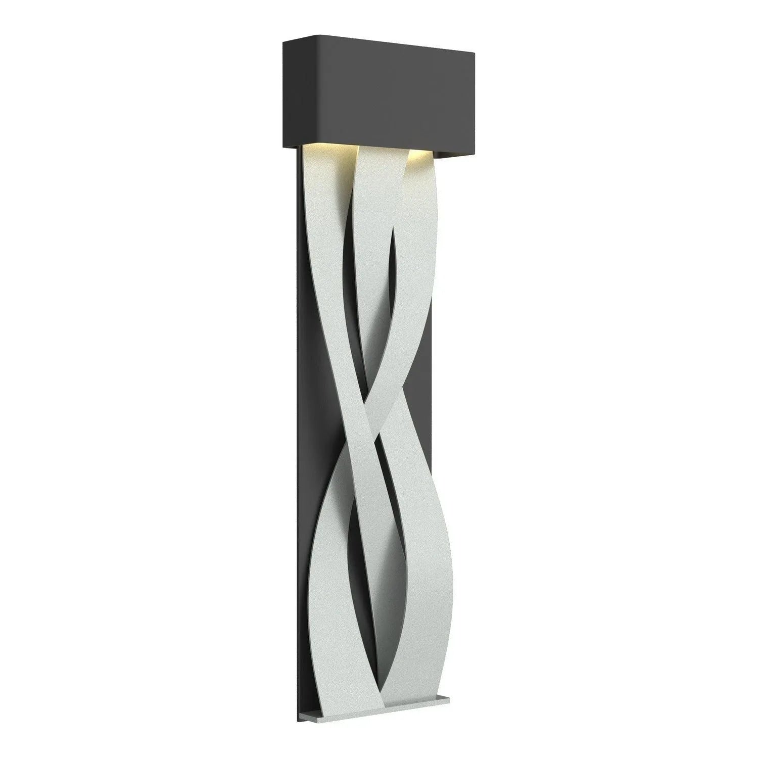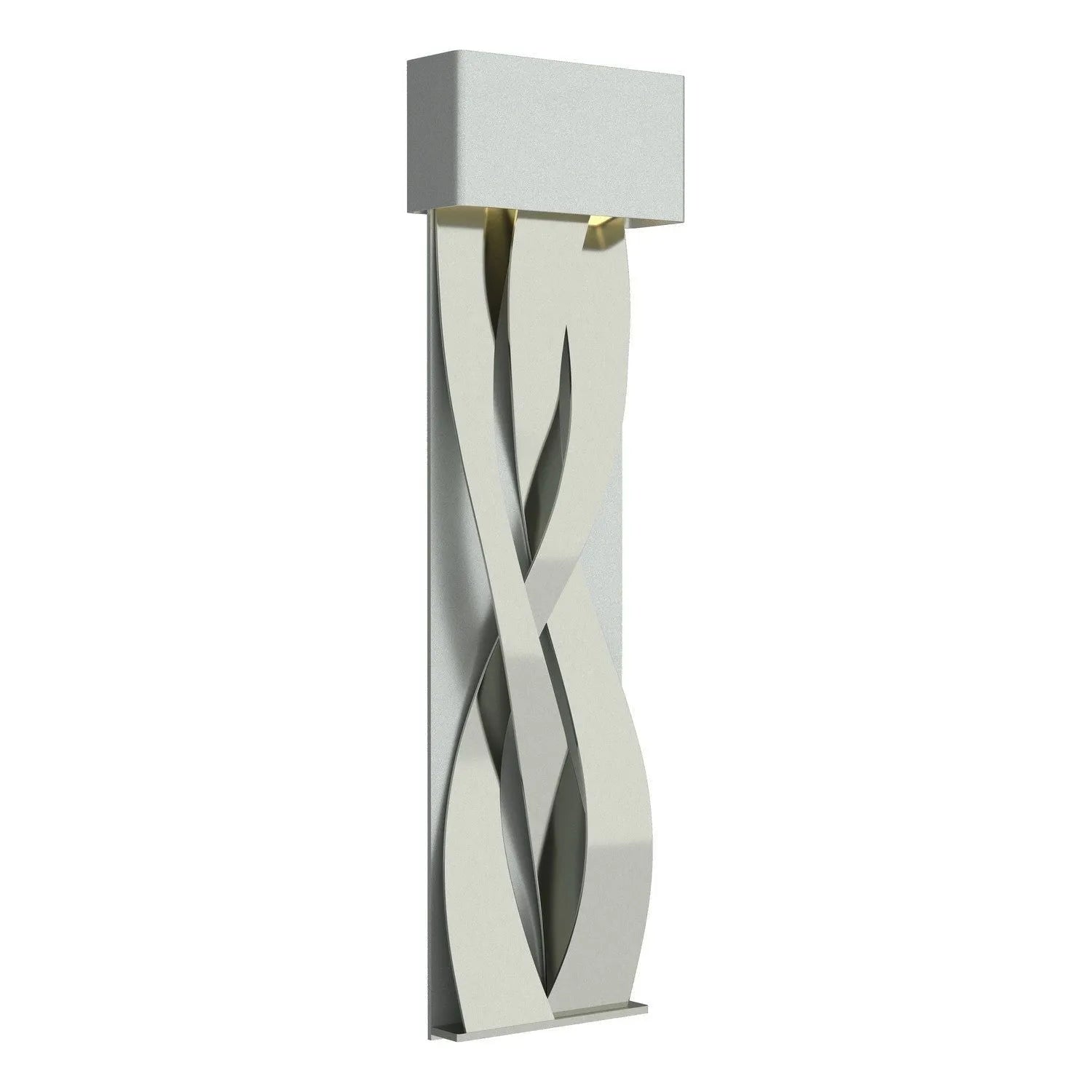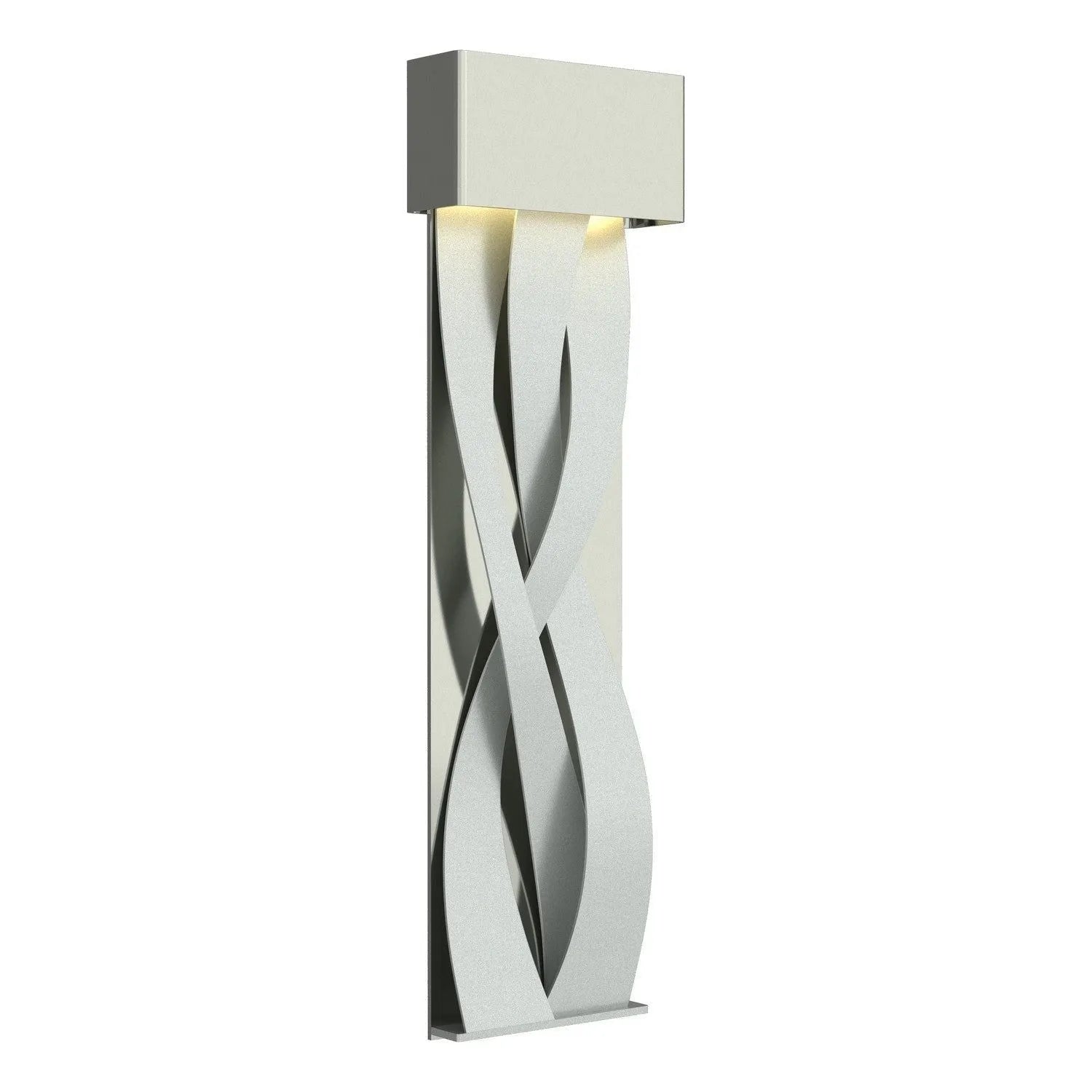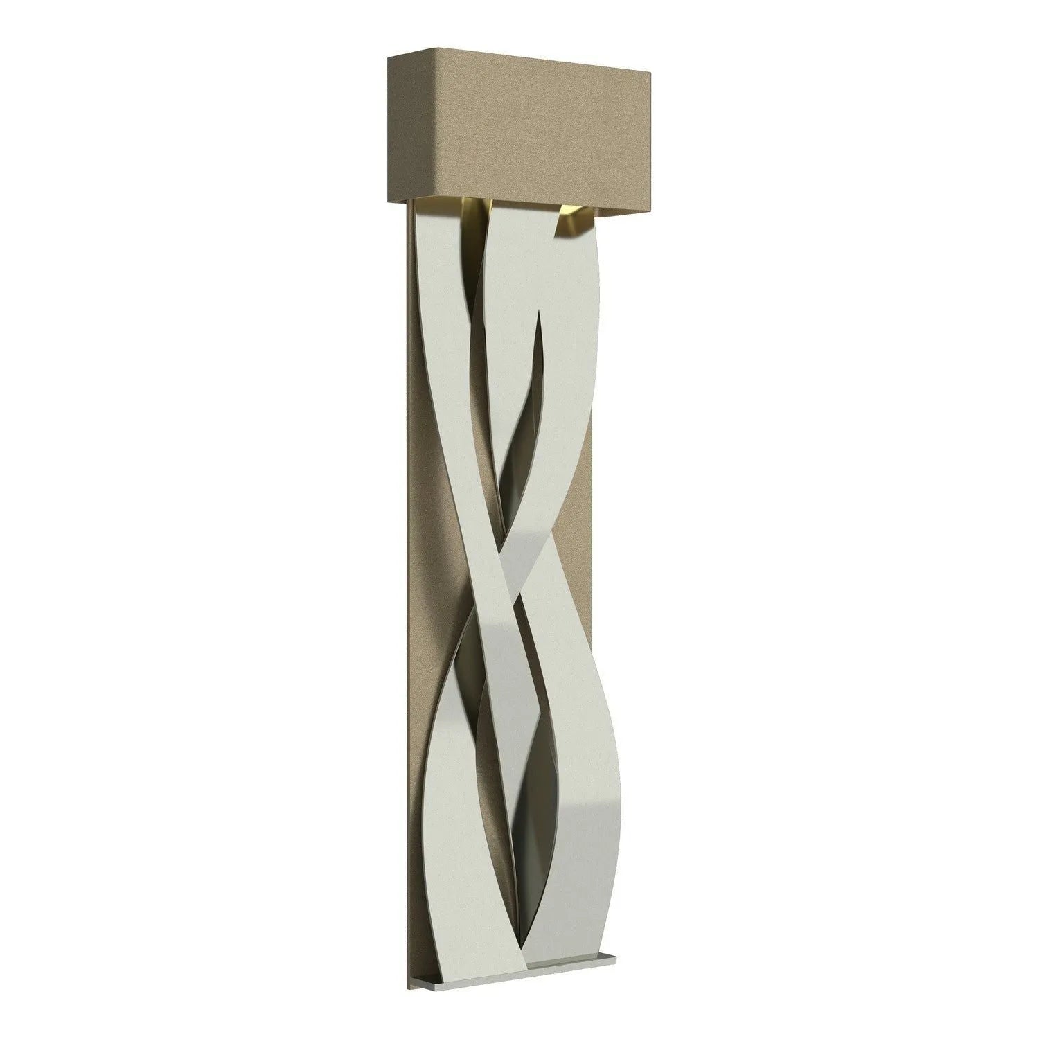 Three bands of metal intertwine to create a stunning sculptural design. The LED light flowing from the enclosure above creates a dramatic play of light and shadow. This transitional design is perfectly suited to both traditional and contemporary settings.