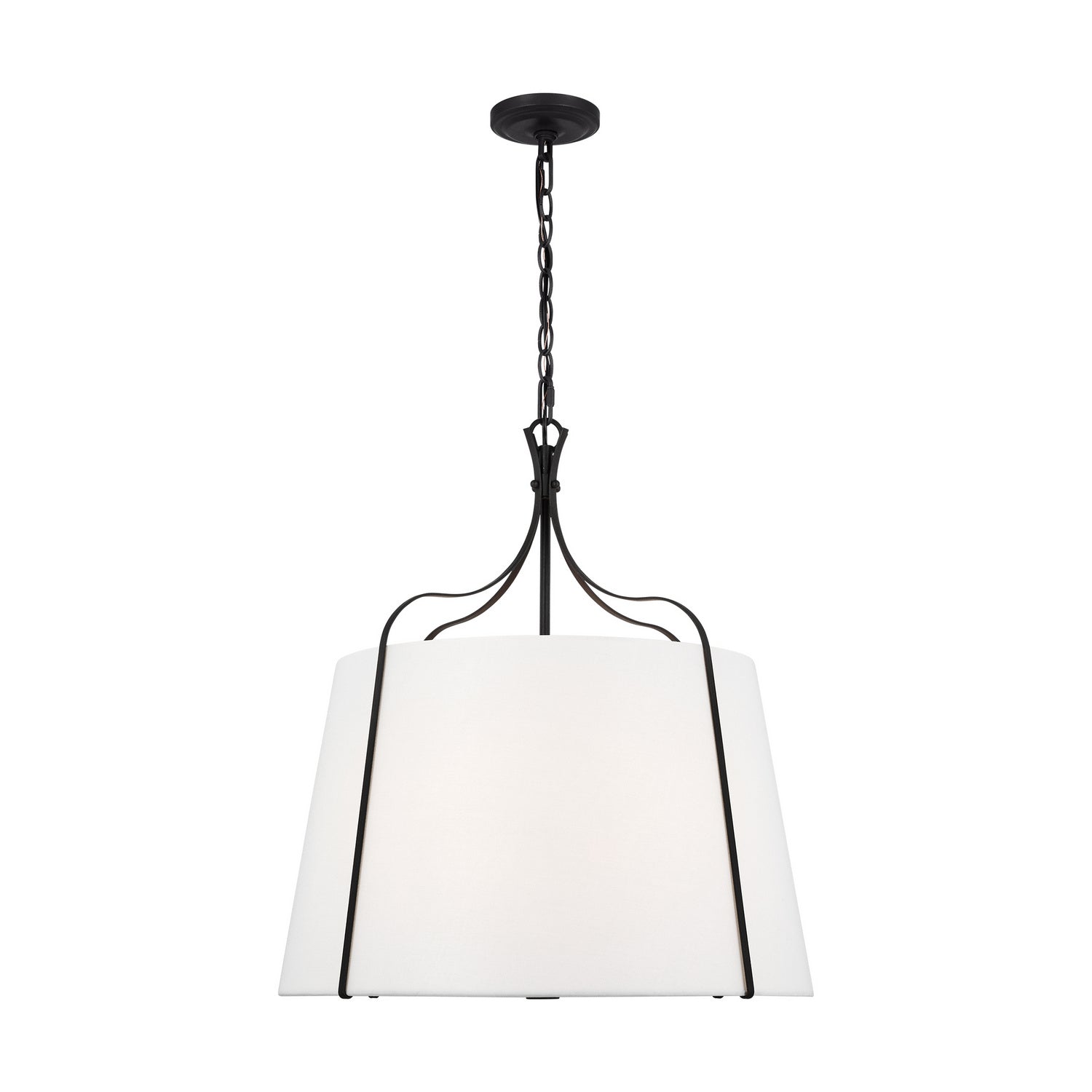 The Leander Pendant by Alexa Hampton makes an immediate impression in any space with its structural iron fixture ensconced in a linen barrel shade. Leander offers a modern twist on a classic lantern design Beautifully structured frame that maintains an open, airy feel