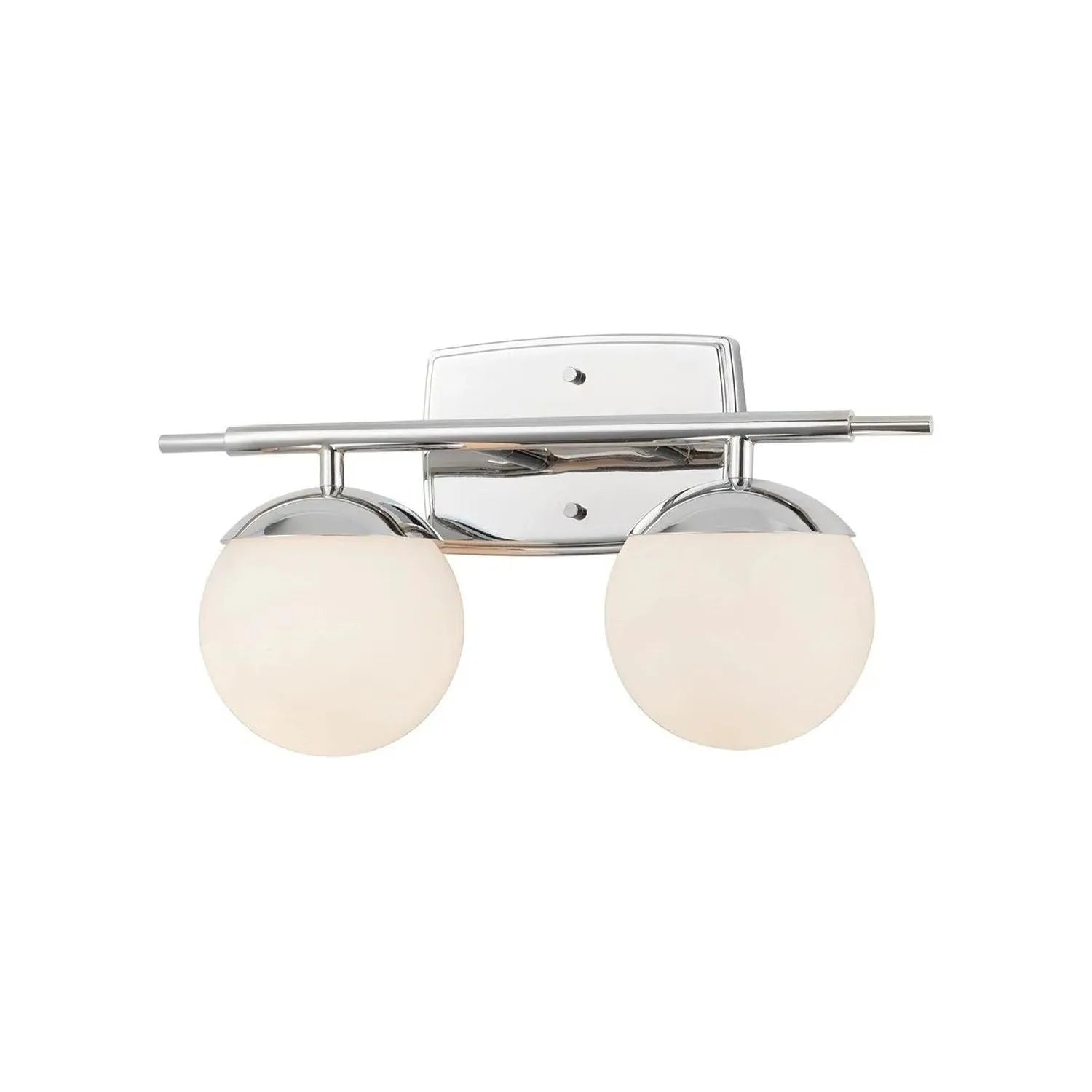 Clean, contemporary form for refined bathrooms. The Justice Designs Epoch Bath Bar pairs two opal glass globes with a streamlined polished chrome rod and rectangular backplate to deliver soft, even illumination and a sculptural profile for modern or transitional interiors.