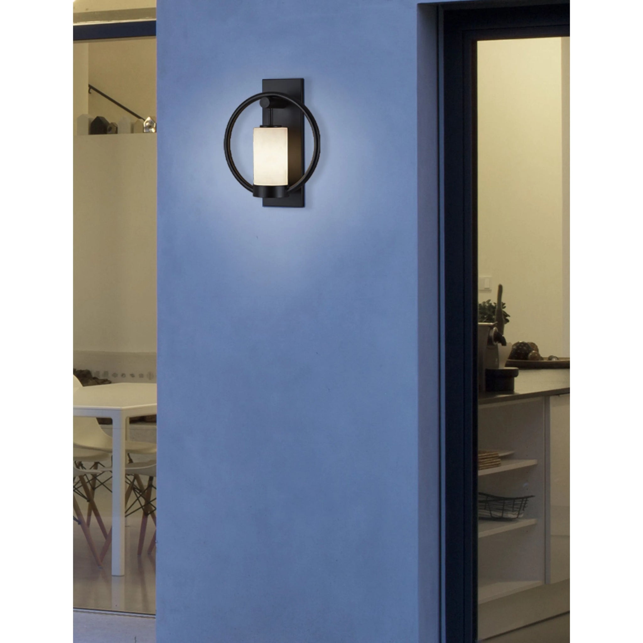 Redondo Outdoor Wall Sconce — A sculptural outdoor fixture by Justice Designs that pairs a clean circular frame with a cylindrical frosted diffuser to deliver balanced, purposeful light. Designed for architects and design-forward homeowners, the Redondo elevates exterior walls with refined form and dependable performance.