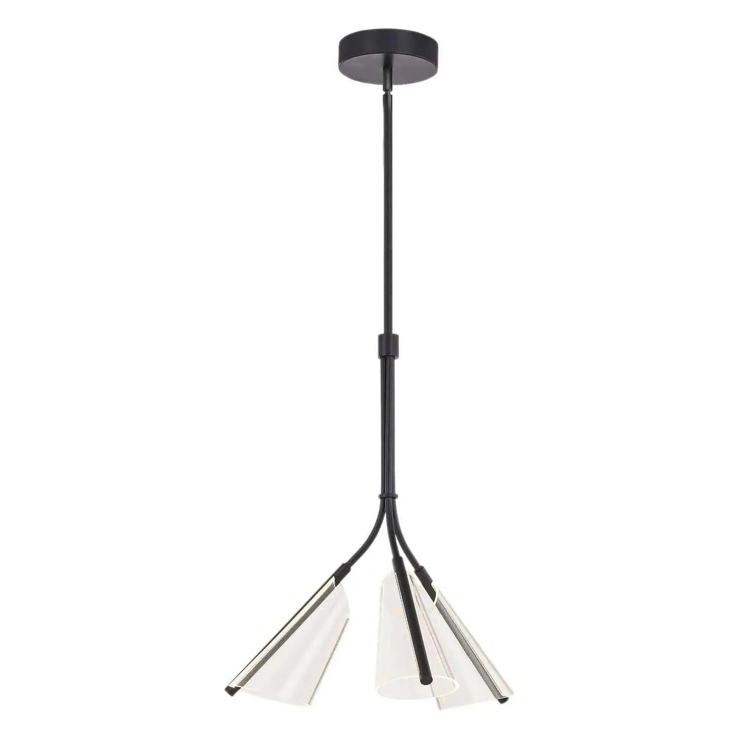 Mulberry LED Triple Pendant by Kuzco Lighting: a sculptural, modern fixture that balances refined form with purposeful illumination. Three slender brass stems converge into a tapered cluster of clear conical glass shades, creating a focused downlight with a luminous, airy presence ideal for curated interiors.