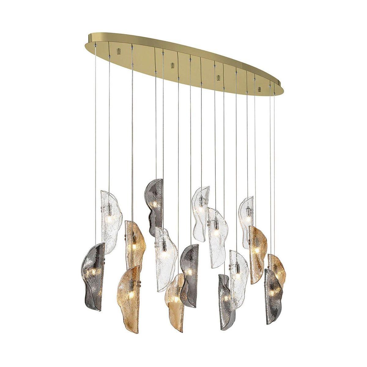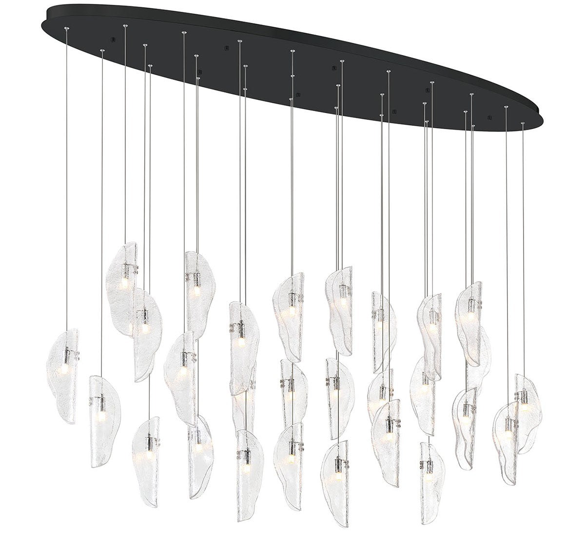 The Sorrento LED Chandelier — Oval Canopy is a refined statement fixture from Lib&Co., designed to marry sculptural form with high-performance illumination. Organic piastra glass shades cascade from a low-profile oval canopy, creating a rhythmic, jewel-like composition that elevates luxury décor and designer lighting schemes.