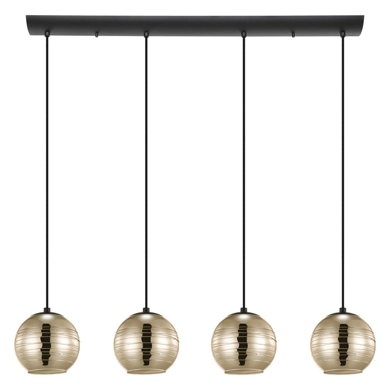 Designed for considered interiors — the Lemorieta Pendant by Eglo Lighting pairs a sculptural, ribbed glass globe with a slim black canopy to deliver precise, modern impact. The vaporized gold glass creates a warm, reflective glow that reads equally at a kitchen island, over a dining table, or in a layered living scheme.