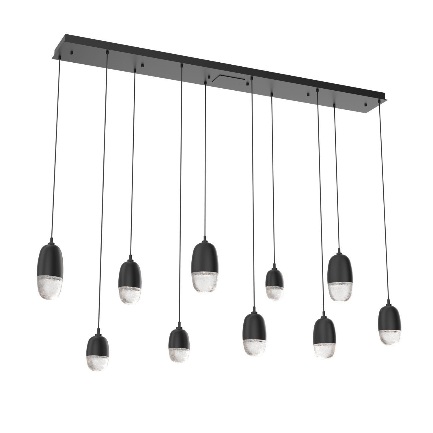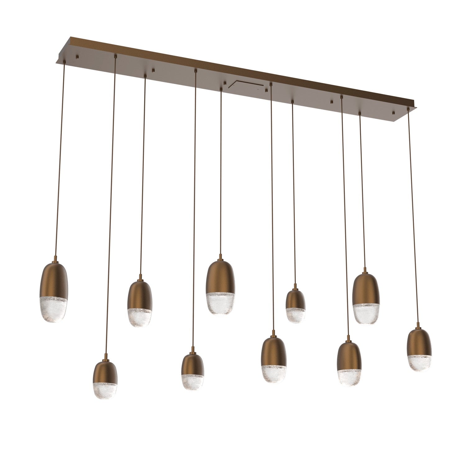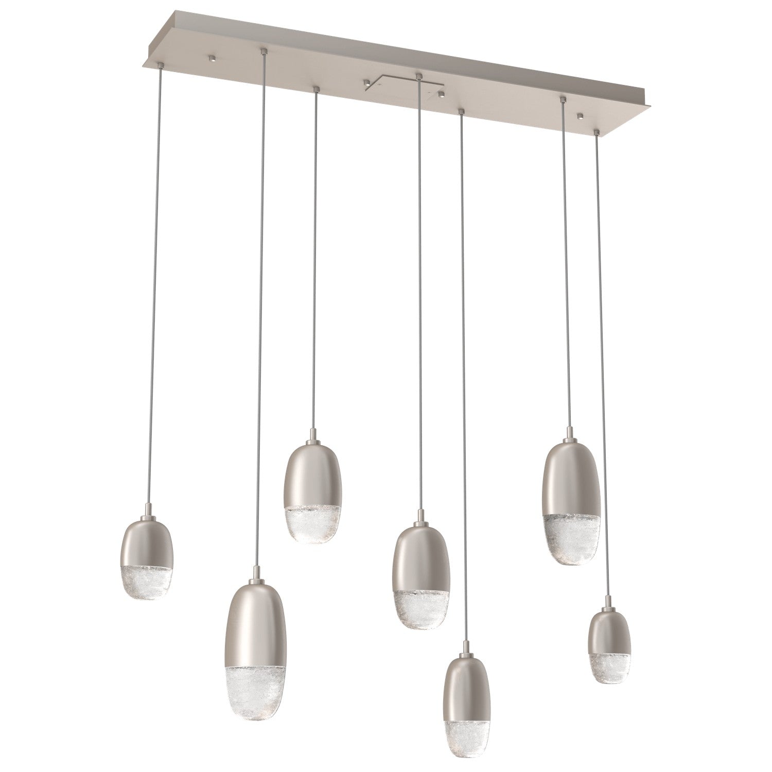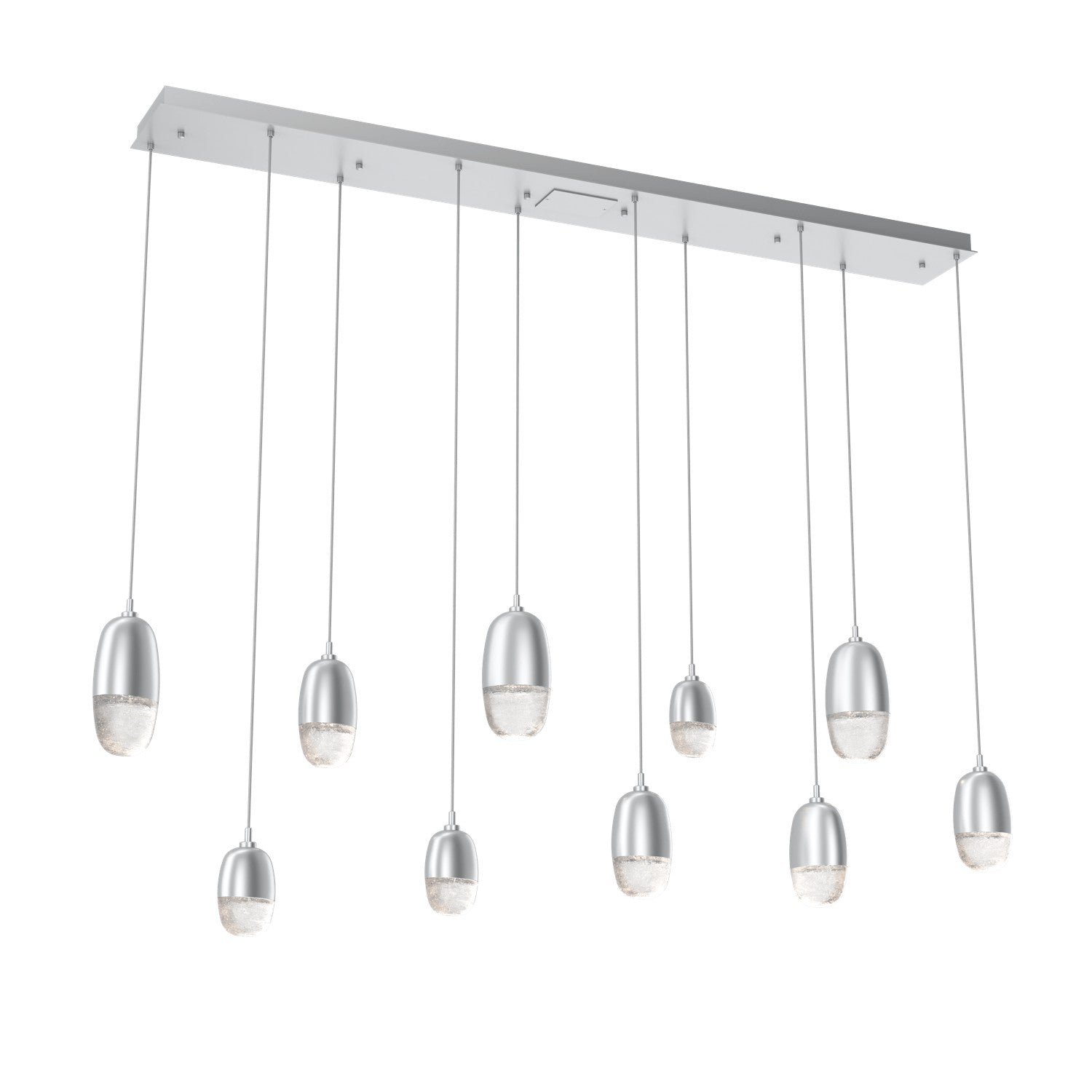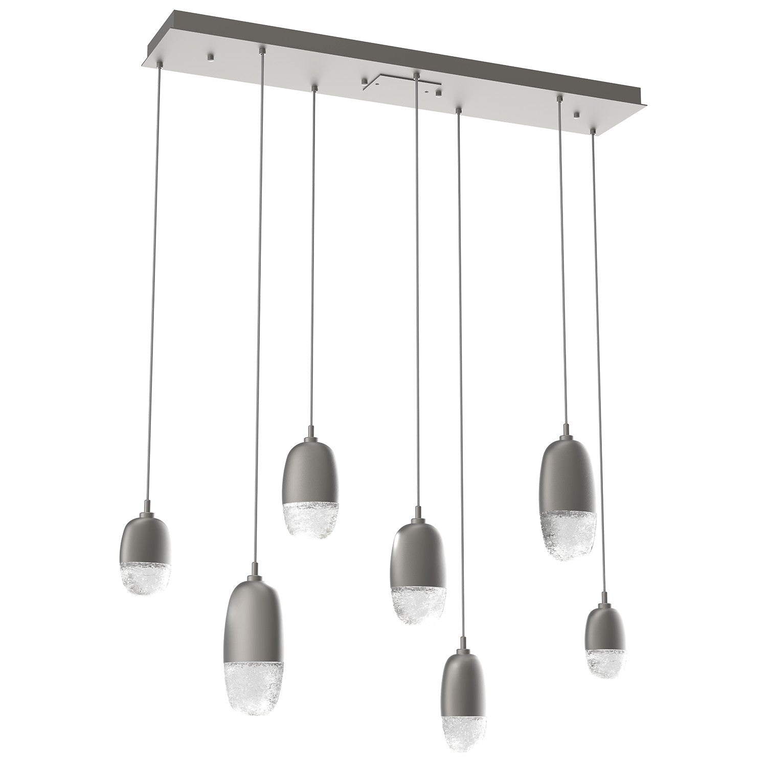 A versatile lighting solution ideal for a wide range of contemporary and modern spaces, this linear multi-port design features a rectangular canopy with 7 or 9 Pebble pendants in artisan cast glass