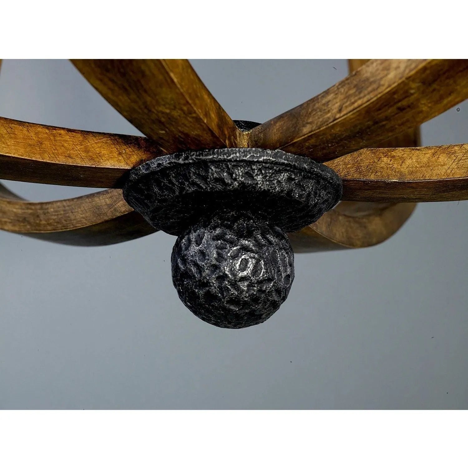 Unique pendants formed of bent wood finished in Barnwood which is a weathered and distressed look. The internal clusters and details are constructed of cast iron in a hammered pattern and finished in a natural looking Iron Ore. A excellent blend of soft shape and rustic finish allows for this collection to fit into a number of interior designs.