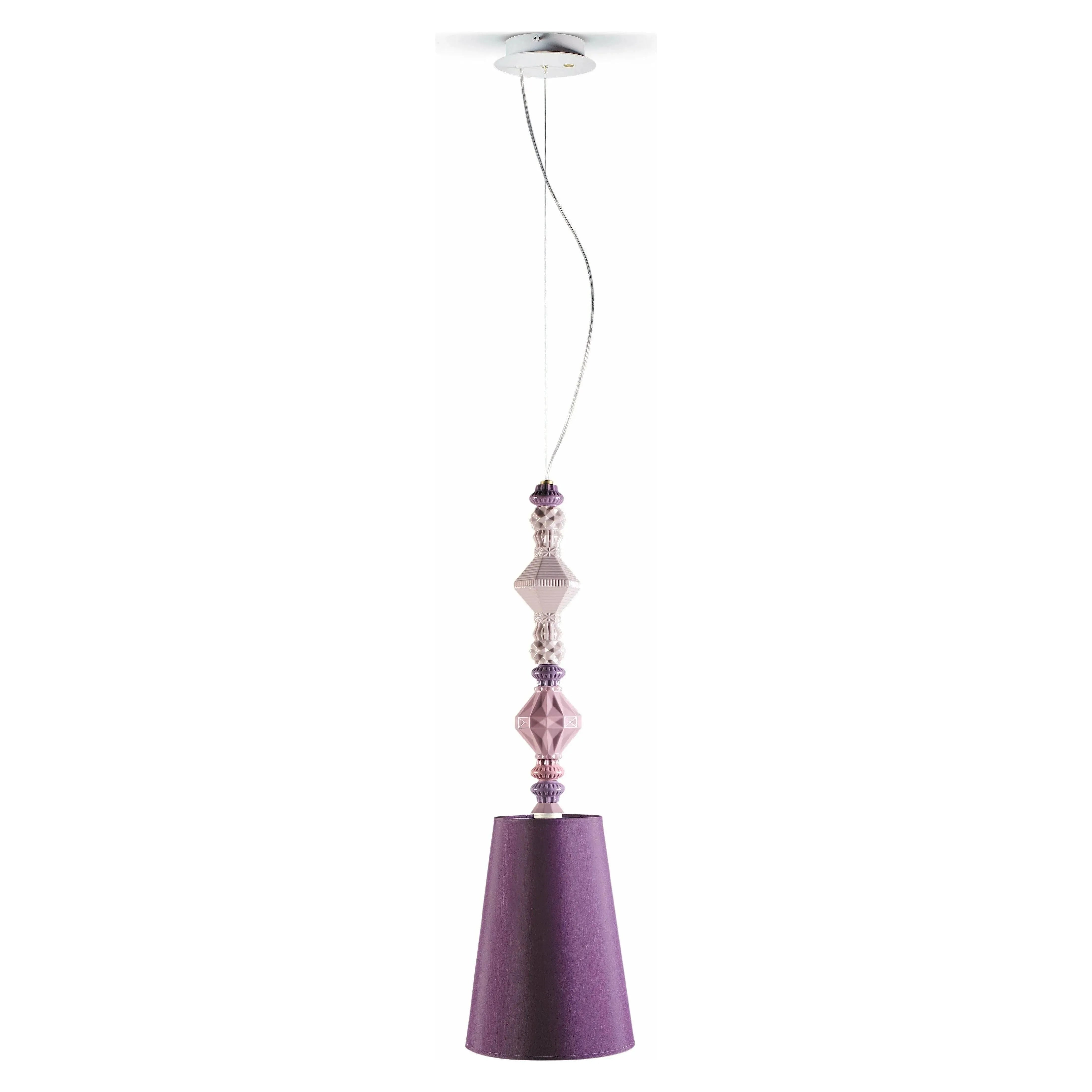 Hanging lamp body made of porcelain. Available in different finishes to match all decorative ambiences. Easy to fix to ceiling system and capable of changing length during installation. This model fits well on a corner display but also on reception desks.