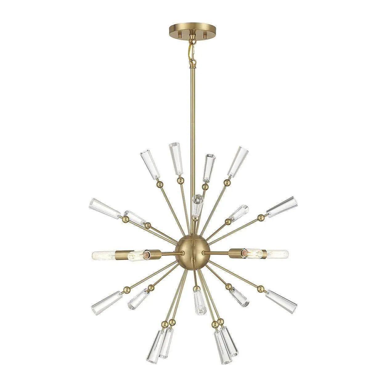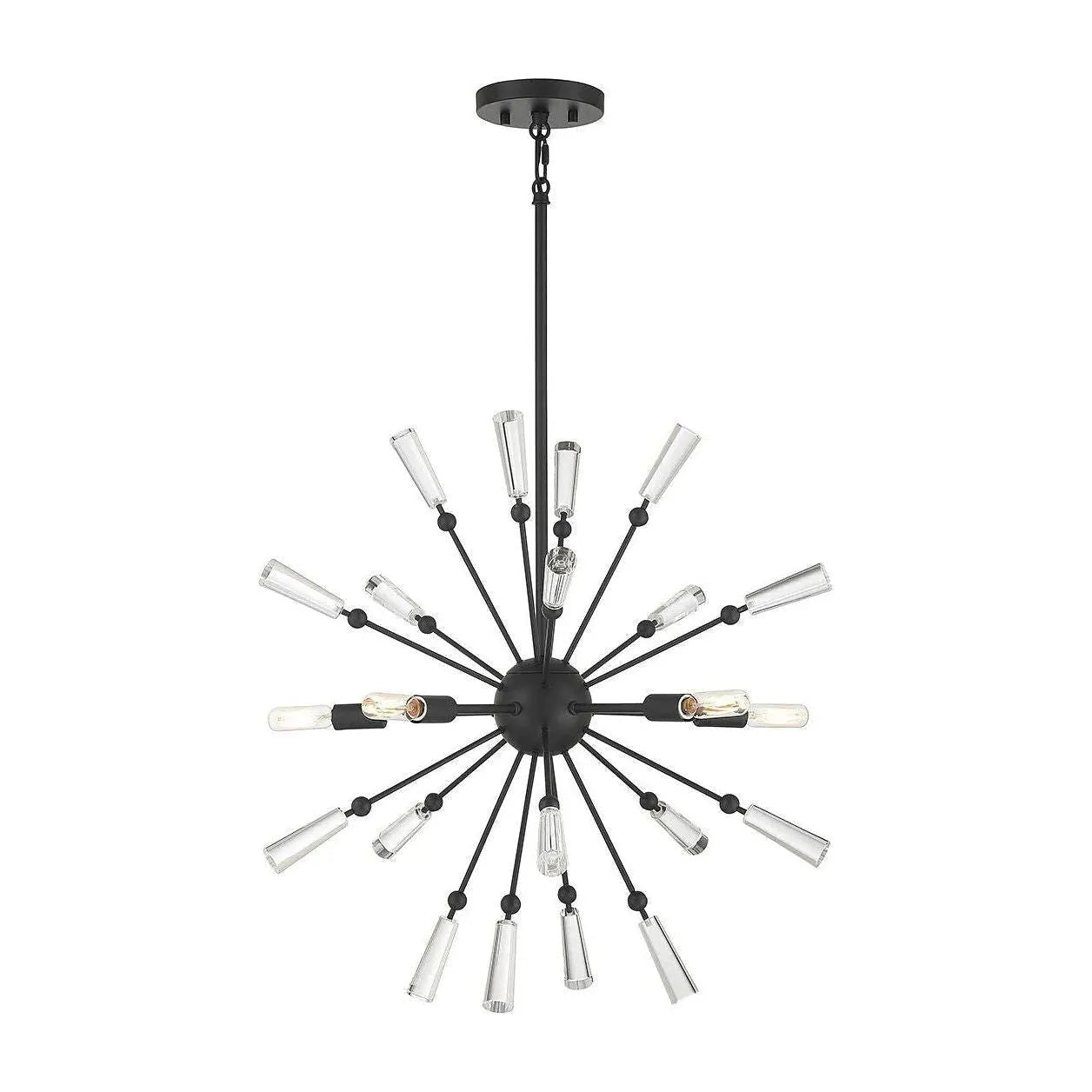 Meridian Lite Trends Meridian Pendant — a modern sputnik silhouette that balances sculptural form with precise craftsmanship. Matte black metal arms radiate from a compact orb, each tipped with a tapered clear-glass cone that transforms point lighting into an elegant constellation of glow.