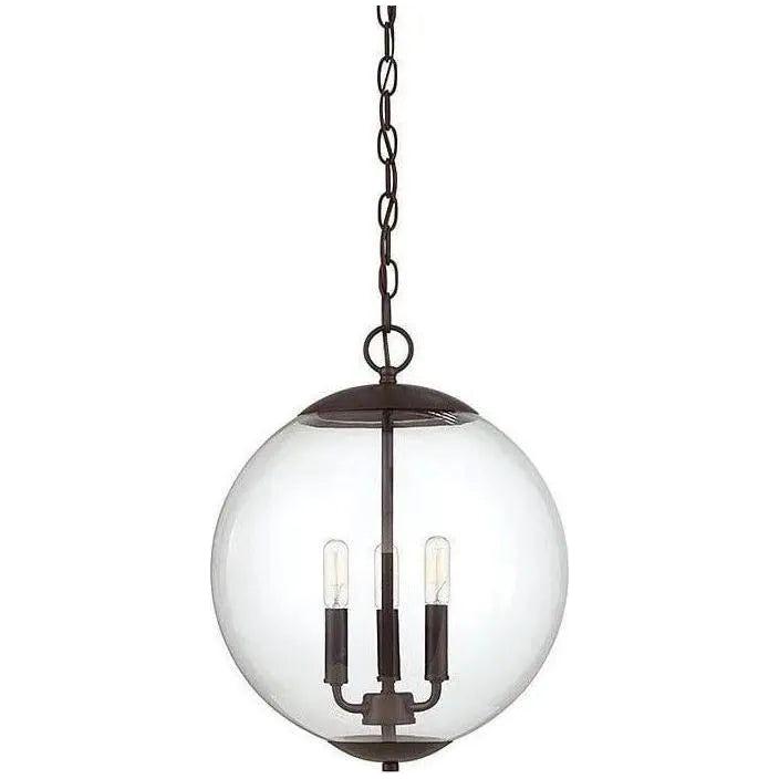 Meridian Lite Trends Meridian Three Light Pendant — A refined study in form and transparency, this pendant pairs a hand-blown clear glass orb with polished chrome hardware to create a sculptural focal point for contemporary interiors.