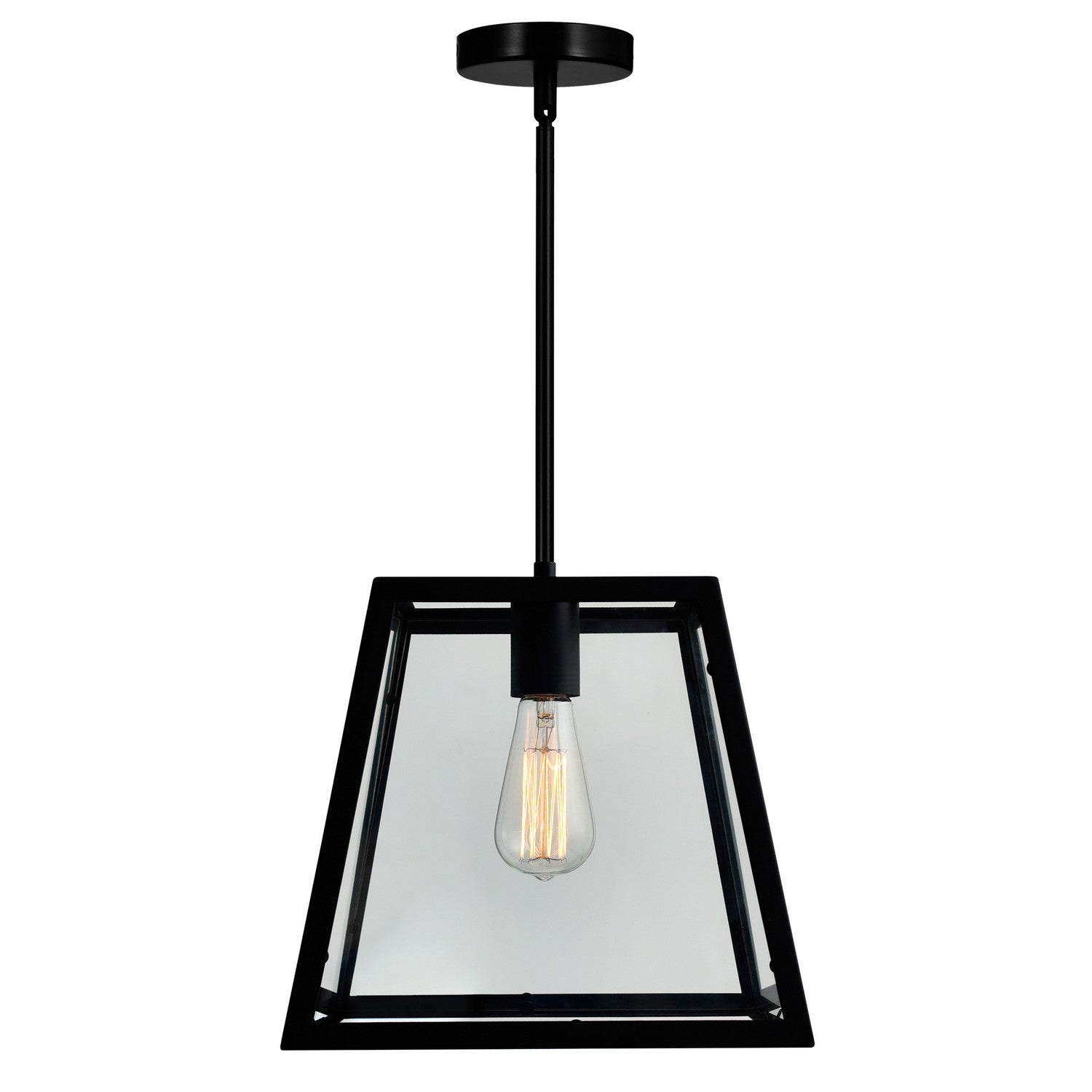 Capture a nostalgic, industrial vibe with the Alyson 12" Black Down Mini Pendant. Designed with a glass and metal shade, this 1-light pendant delivers a rustic aesthetic perfect for vintage-inspired spaces. With a 12-inch wide silhouette and clean lines, its a versatile fixture ideal for kitchen islands, bars, or entryways. The black-finished metal hardware pairs beautifully with clear glass, allowing the glow of a single E26 bulb to shine through. LED compatible and full of character, this mini pendant blends classic charm with modern practicality. Finish: Black Fixture Width: 12" Light Count: 1 Bulb Base: E26 (Bulb not included) Style: Rustic / Industrial / Farmhouse Mount Type: Down Mini Pendant
