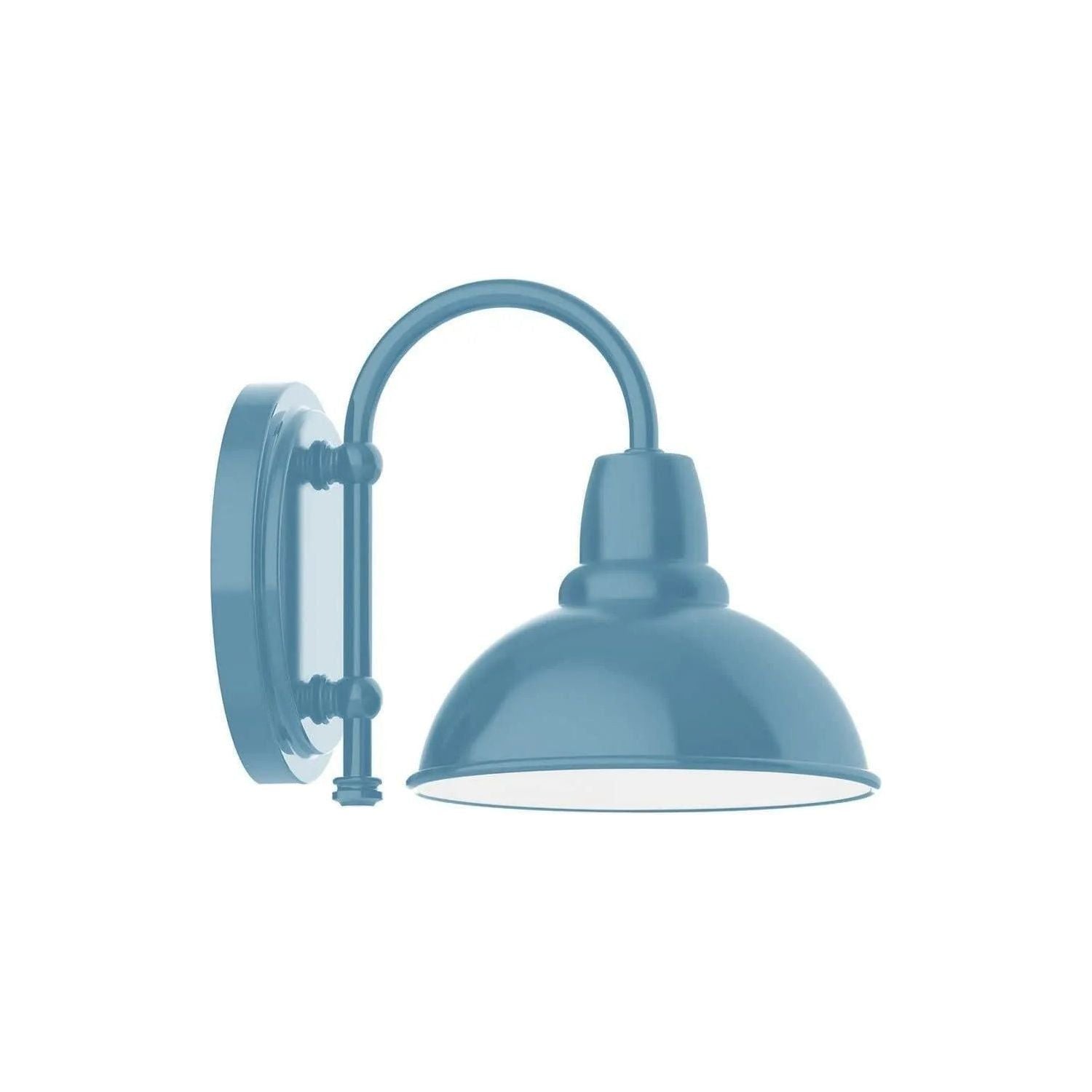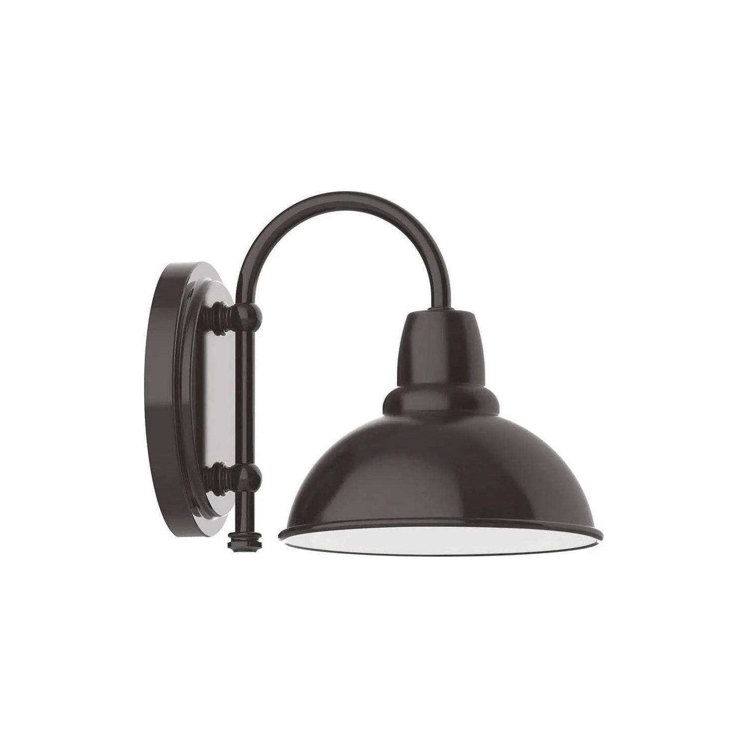 Cafe 8" Wall Sconce — a refined study in form and function, designed to anchor curated interiors with a purposeful silhouette. The 8" domed metal shade, curved gooseneck arm and compact round backplate create a balanced profile that reads as modern hardware with a classic touch.