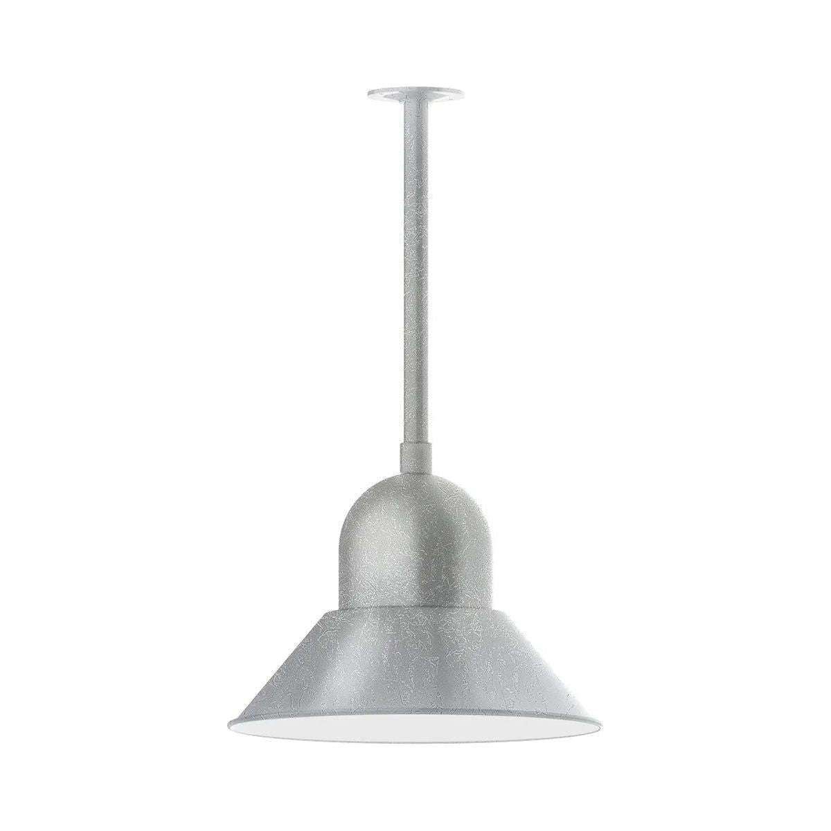 Precision-spun aluminum and a durable polyester powder coat finish ensure lasting color retention and scratch resistance, while the white-painted interior maximizes light output. Dimensions: 16" diameter shade, 10 7/8" shade height; overall height equals chosen stem length plus 11 1/8". UL wet-rated and made in the USA, the Prima is specified for both exterior and interior applications.