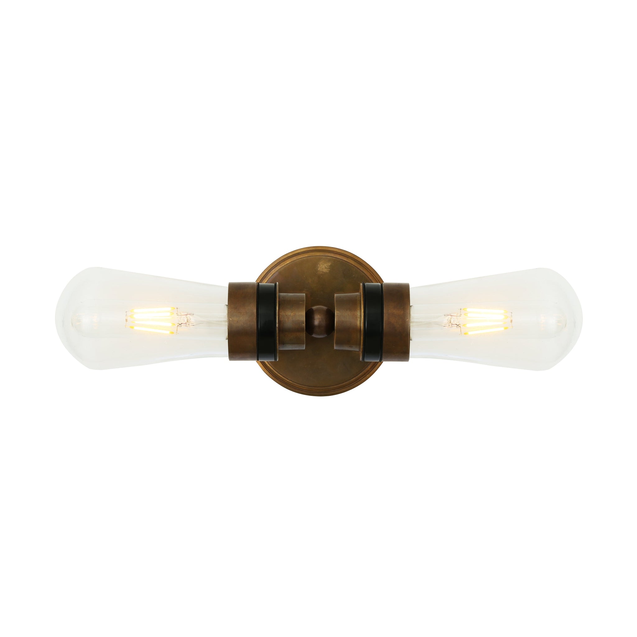 Ara Wall Light by Mullan Lighting is a considered designer lighting piece that balances industrial clarity with refined form. The symmetrical double-sconce silhouette pairs clear teardrop glass shades with a solid brass backplate for crisp, glare-controlled illumination ideal for bathrooms, entries, and exterior walls.