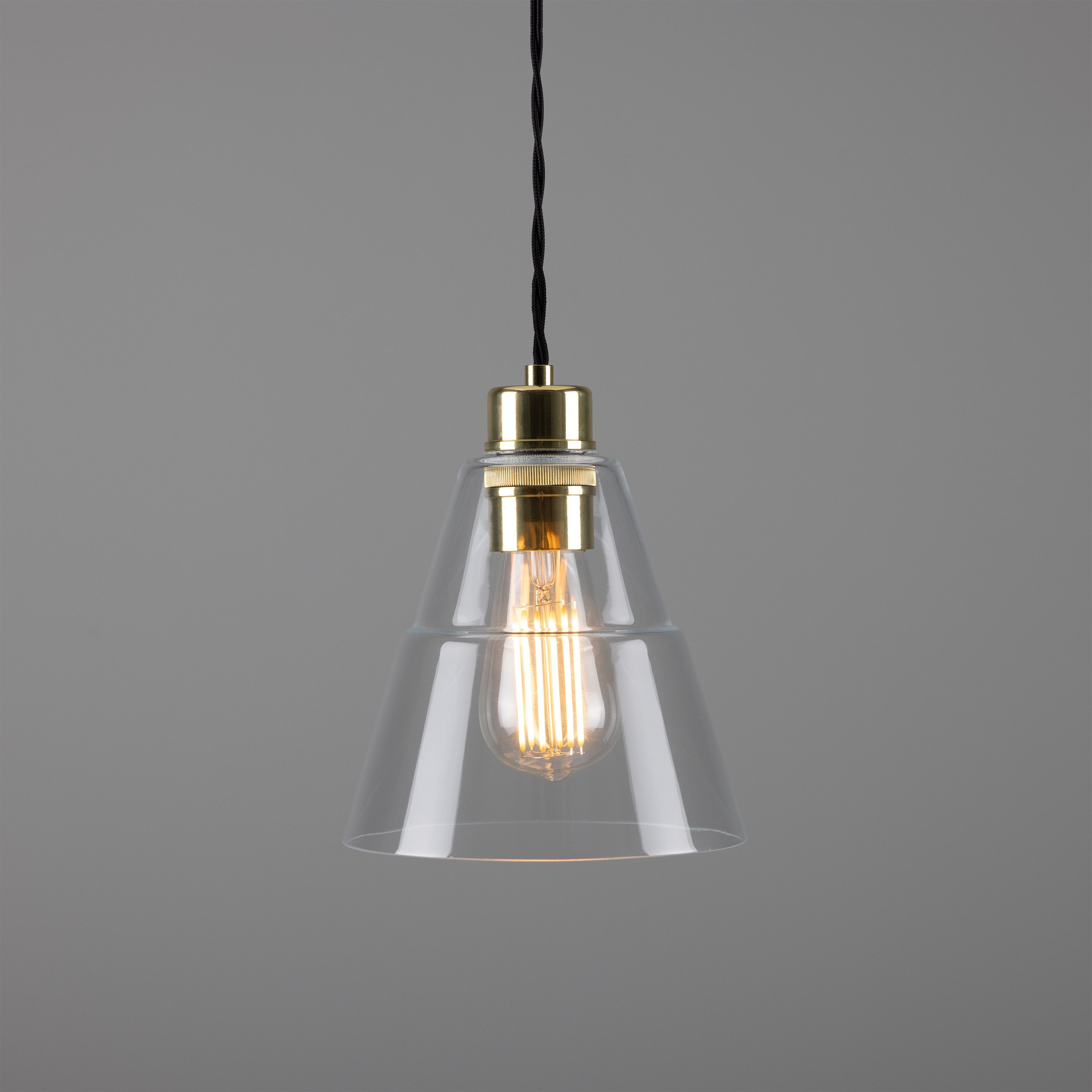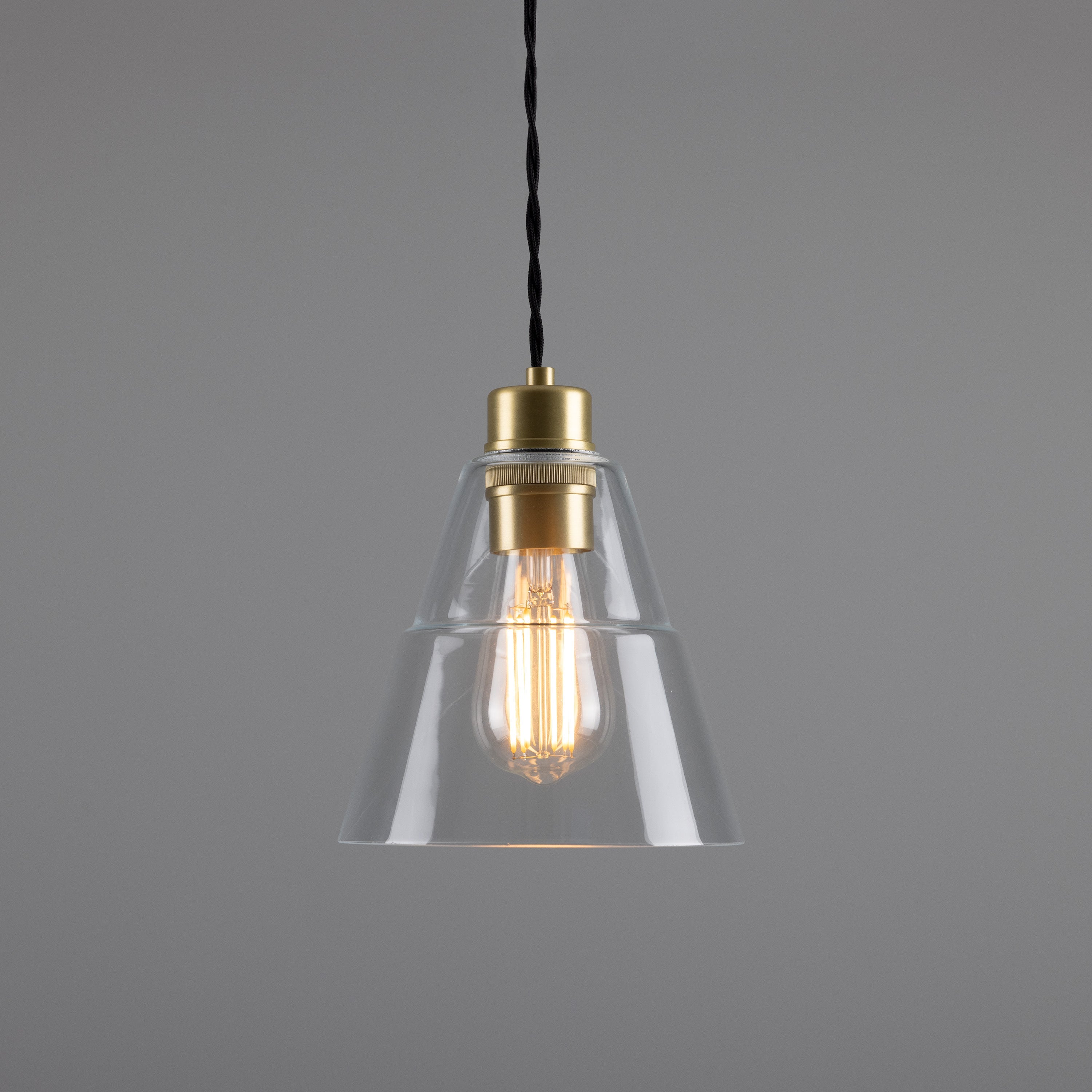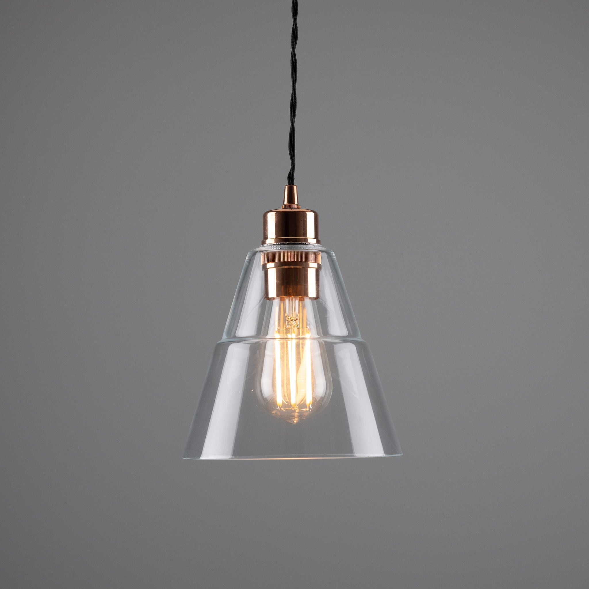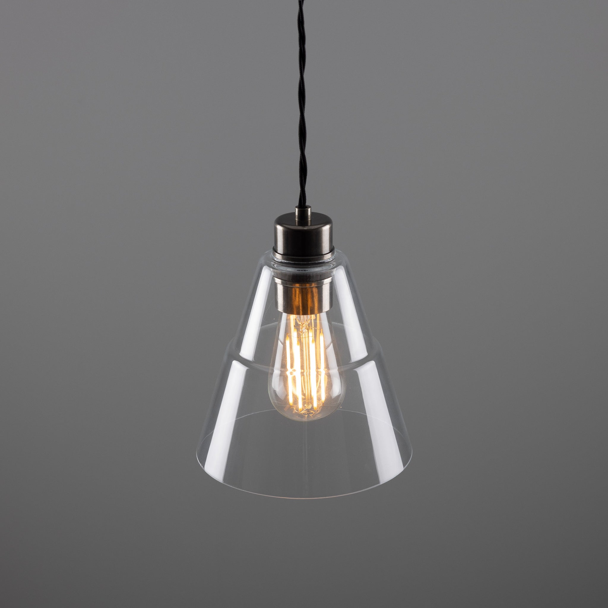 Lyx Pendant by Mullan Lighting refines a simple silhouette into a modern statement—clear blown glass forms a tapered cone that showcases the lamp as an object of design. The exposed bulb and metal cap reveal precise craftsmanship and an honest use of materials that suit curated residential and commercial interiors.