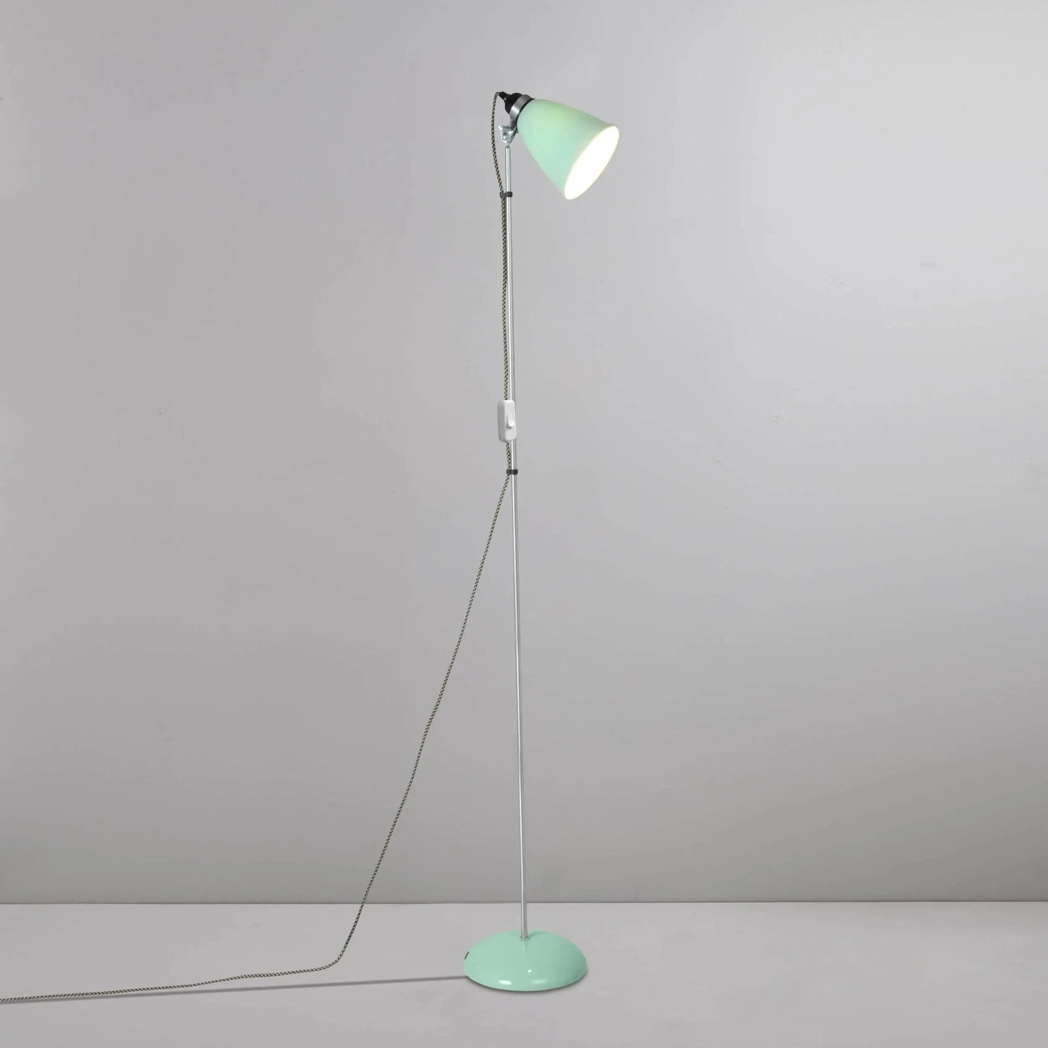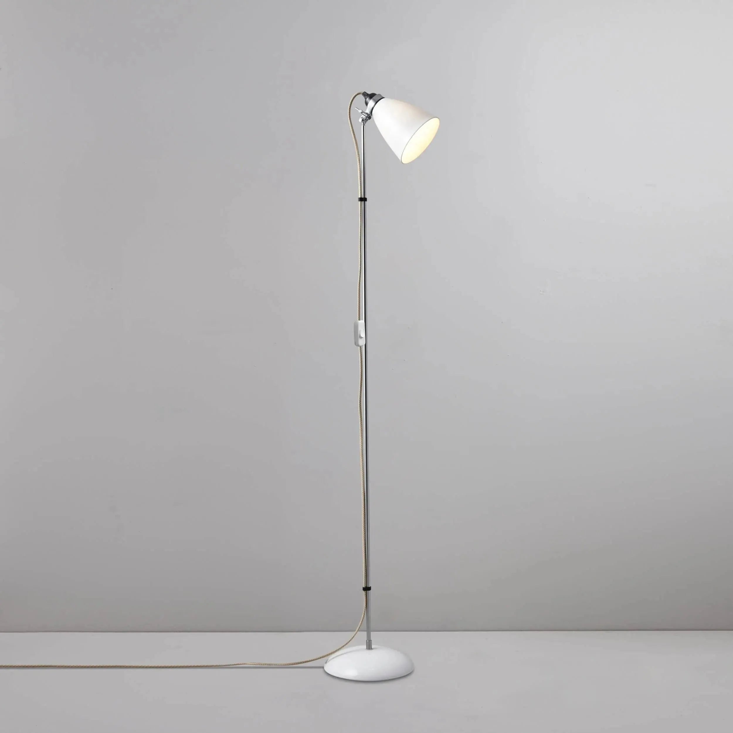 A British design classic in translucent bone china. With its moveable shade and smart cotton braided flex, the Hector floor light perfectly combines style and function. Available in different colours and with varying sized shades.