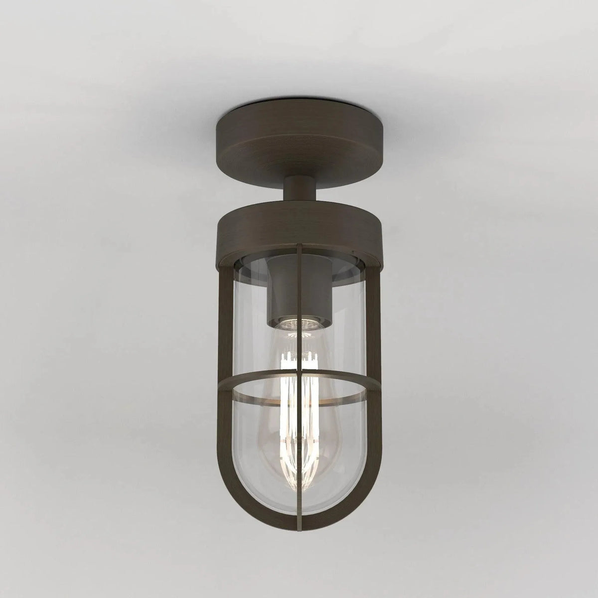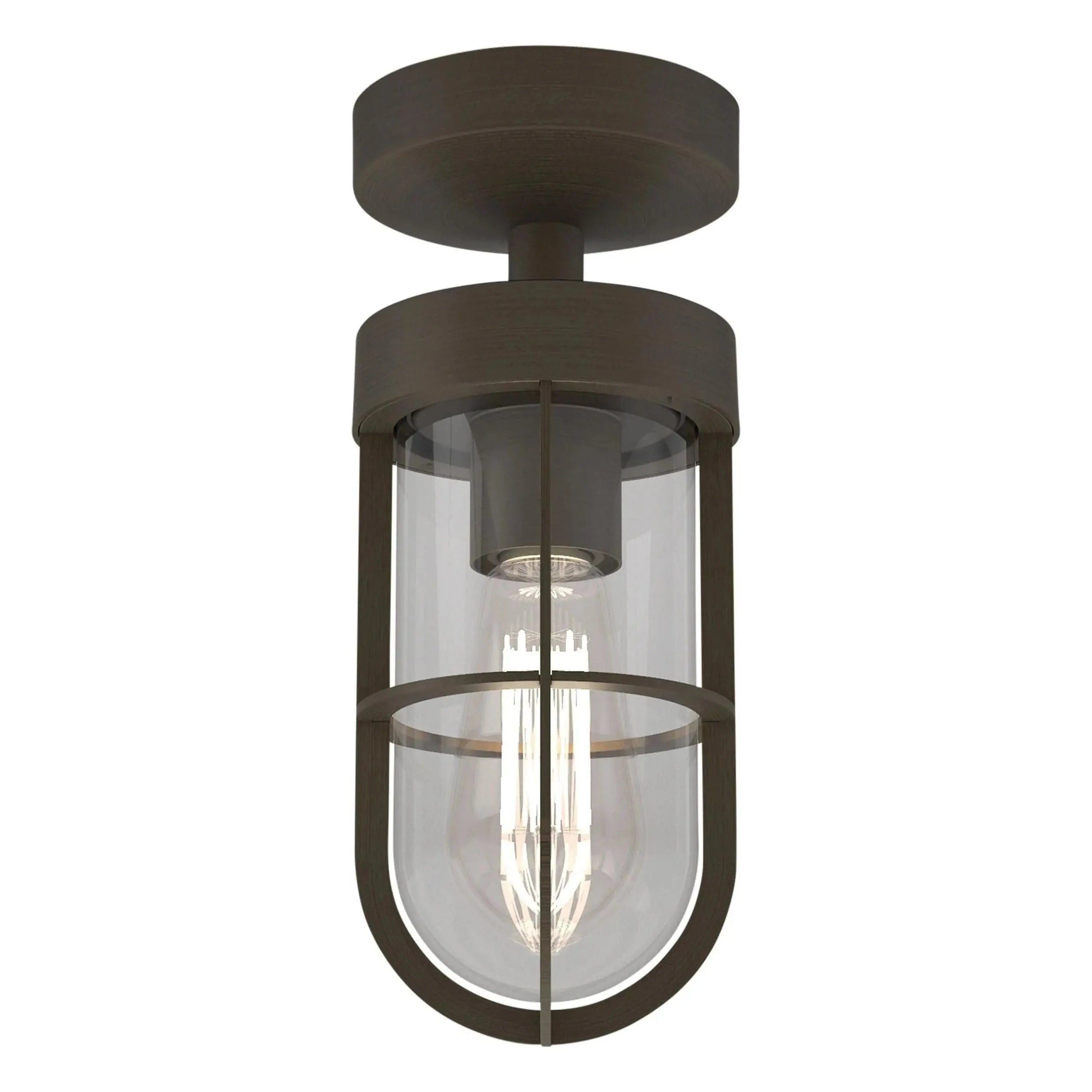 Cabin Semi Flush from Astro Lighting is a study in refined restraint — a compact semi-flush ceiling light that pairs industrial structure with a warm, aged finish for considered interiors. Its cylindrical clear glass diffuser is encased in a slim metal cage, revealing the bulb and delivering focused, yet ambient illumination ideal for corridors, kitchens or intimate living spaces.