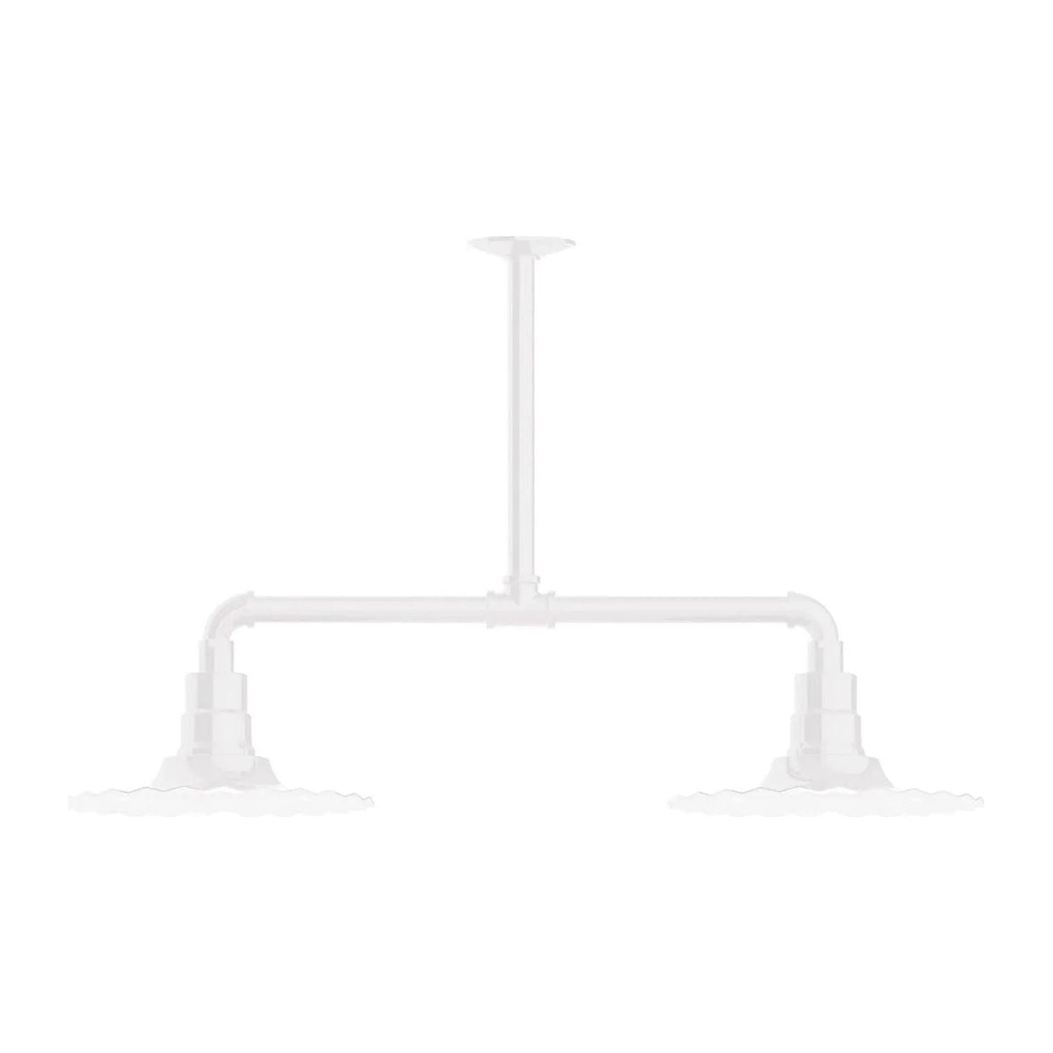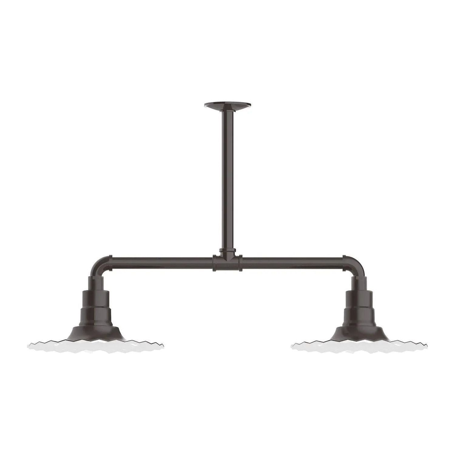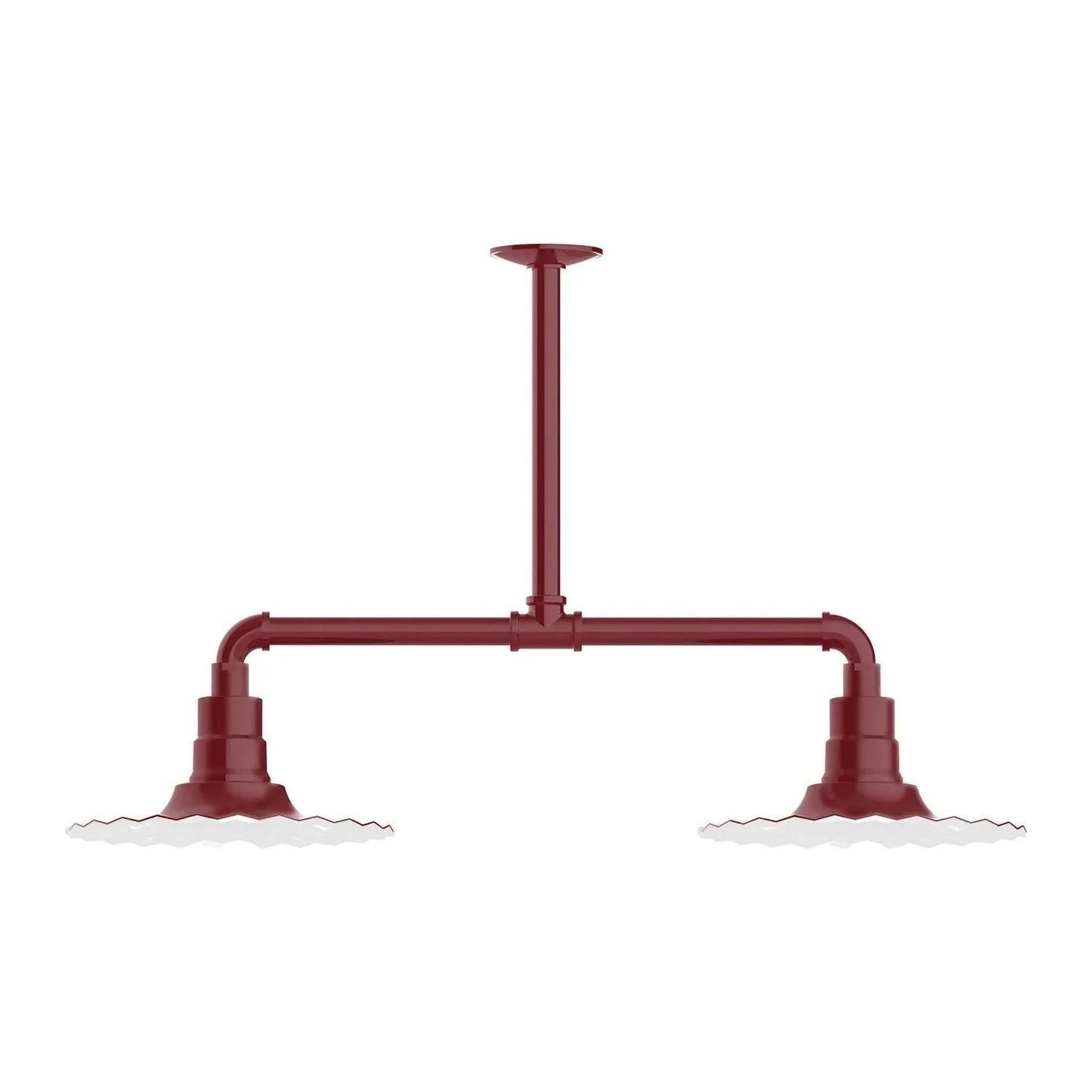 Radial 12" 2-Light Stem Hung Pendant Light by Montclair Light Works is a deliberate study in form and function — engineered to bring architectural presence and reliable illumination to curated interiors. The industrial-inspired horizontal stem and sculpted, fluted 12" radial shades create a balanced, graphic silhouette that reads beautifully above islands, worktables, or commercial counters.