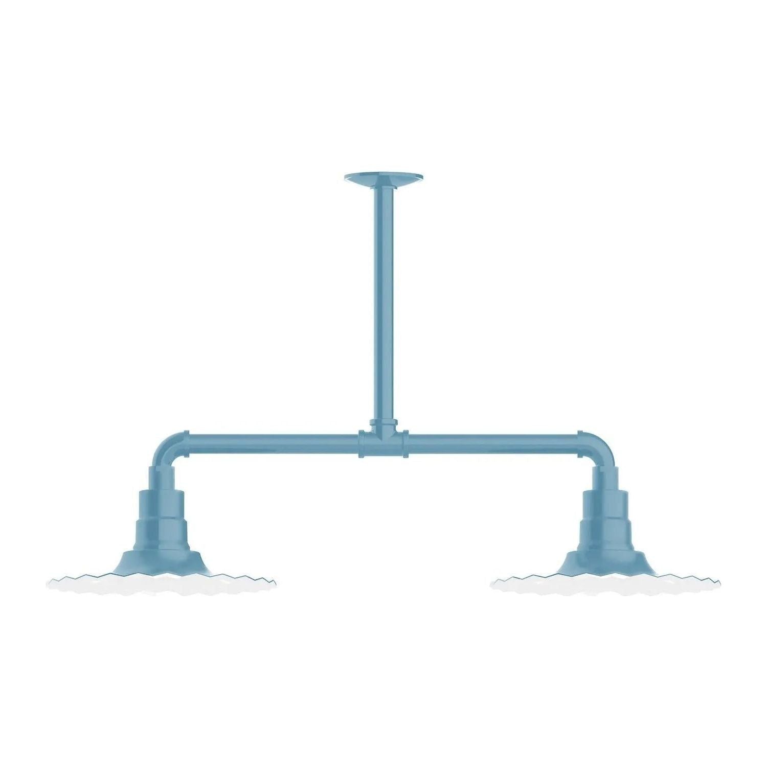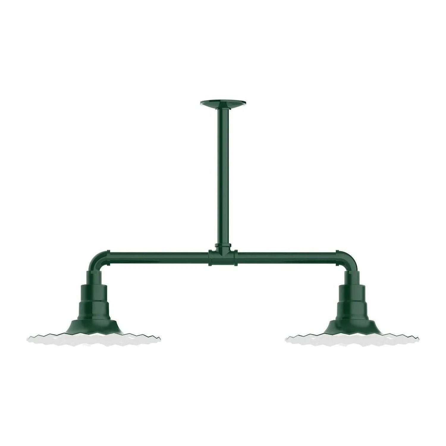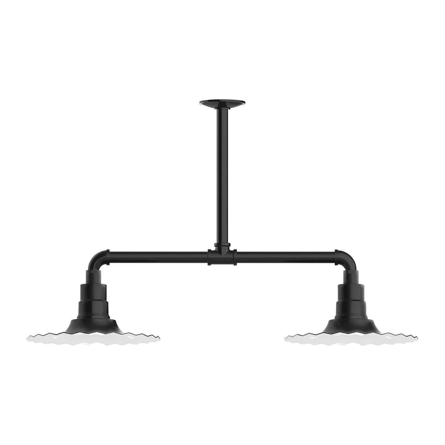 Radial 12" 2-Light Stem Hung Pendant Light by Montclair Light Works is a deliberate study in form and function — engineered to bring architectural presence and reliable illumination to curated interiors. The industrial-inspired horizontal stem and sculpted, fluted 12" radial shades create a balanced, graphic silhouette that reads beautifully above islands, worktables, or commercial counters.
