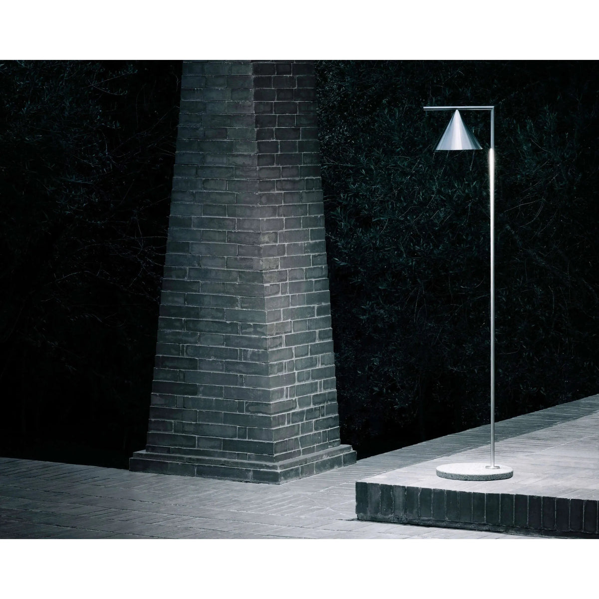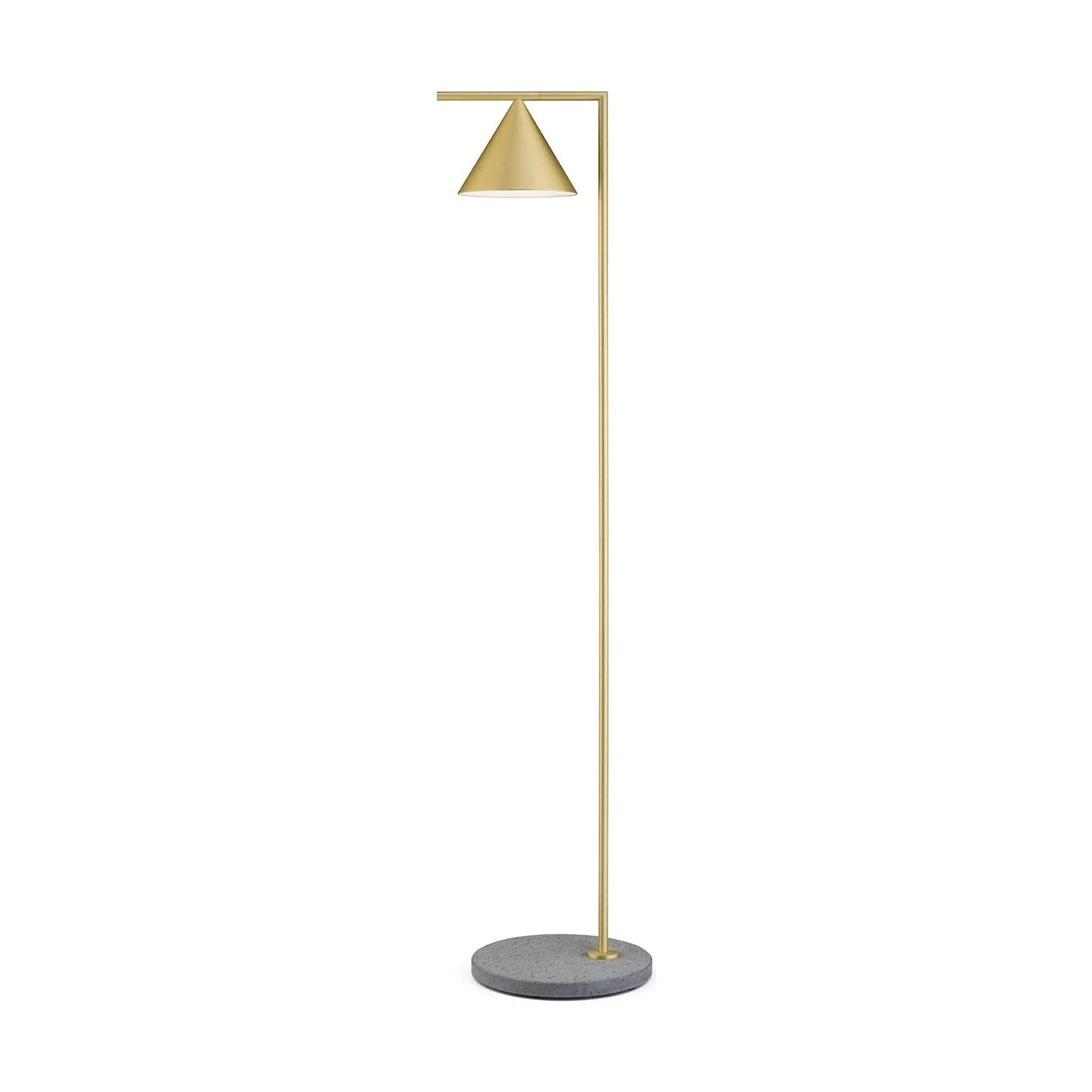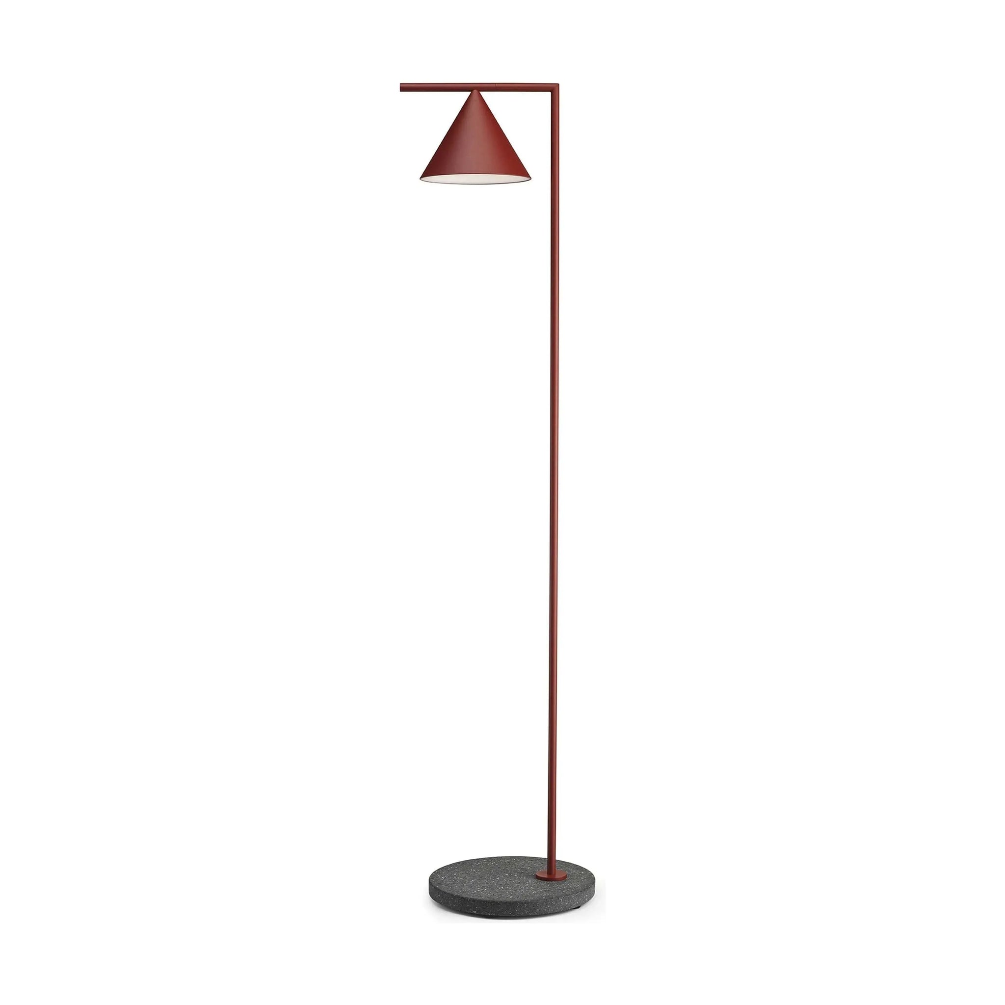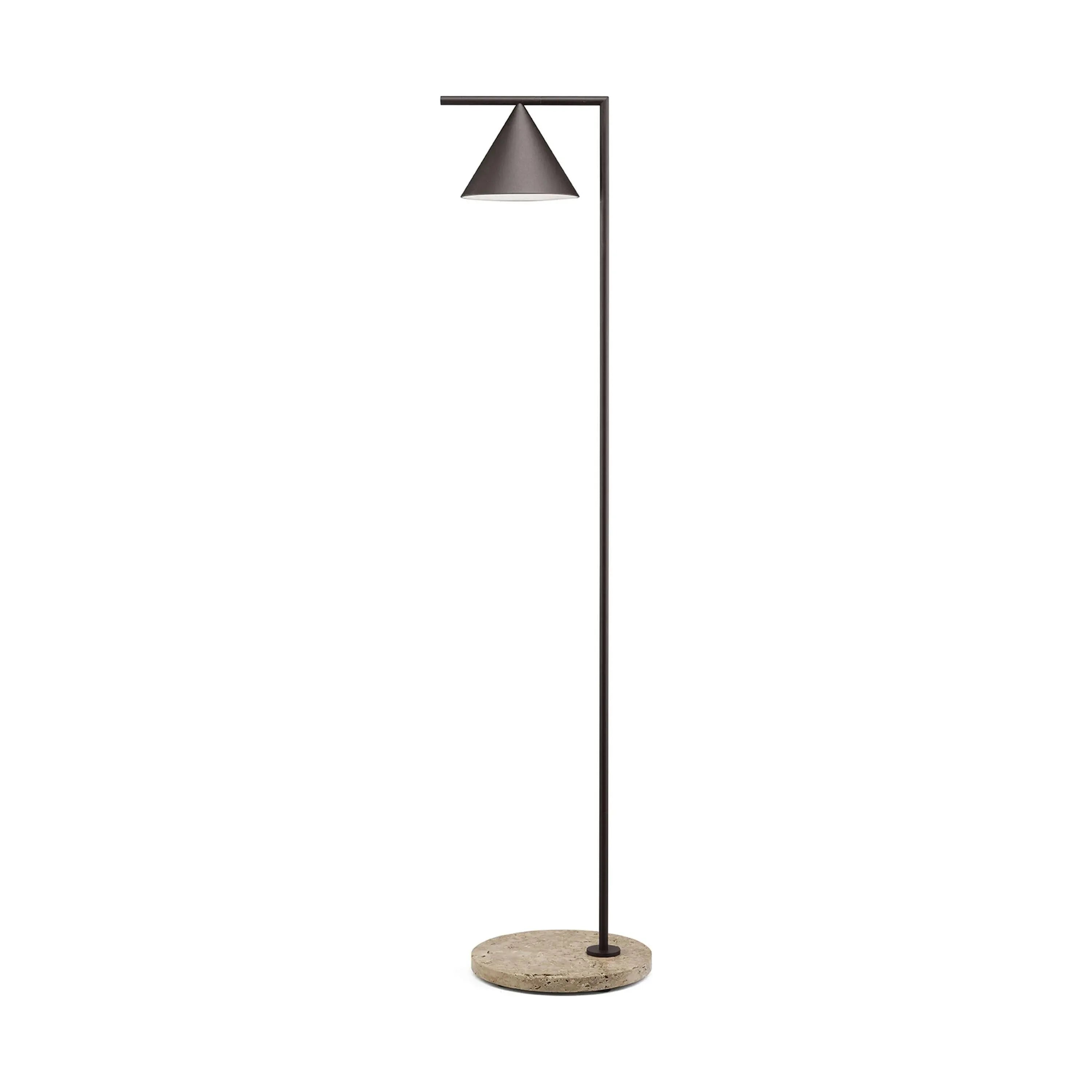 The sleek and graceful Captain Flint Floor Lamp is a versatile fixture which features smart details from head to toe. A spinning cone diffuser provides direct light that can be re-positioned and is weighted by a stunning natural material base. Its stem and cone are available in Red Burgundy with Black Lava base, Black finish with Black Lava base, Brushed Brass finish with Grey Lava Stone base, Brushed Stainless Steel with Occhio di Pernice base, or Deep Brown finish with a Travertino base. Note: Switch integrated (remote dimmable).