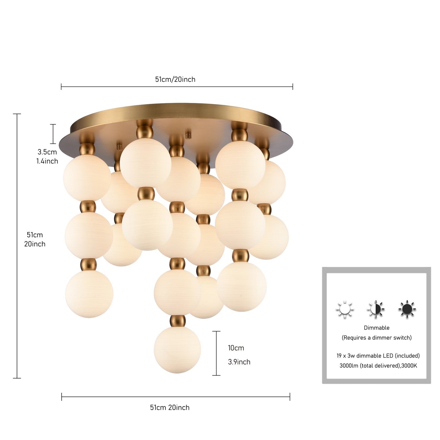 Bulbs: 19x Integrated 3W 90CRI, Dimmable
