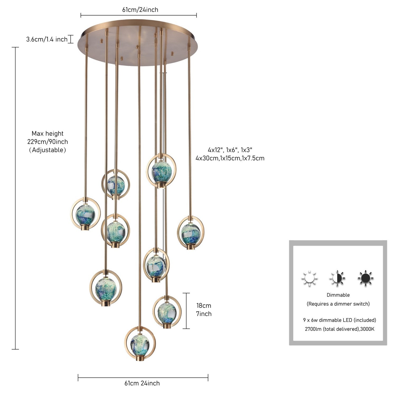 Bulbs: 5x Integrated 6W 90CRI, Dimmable
