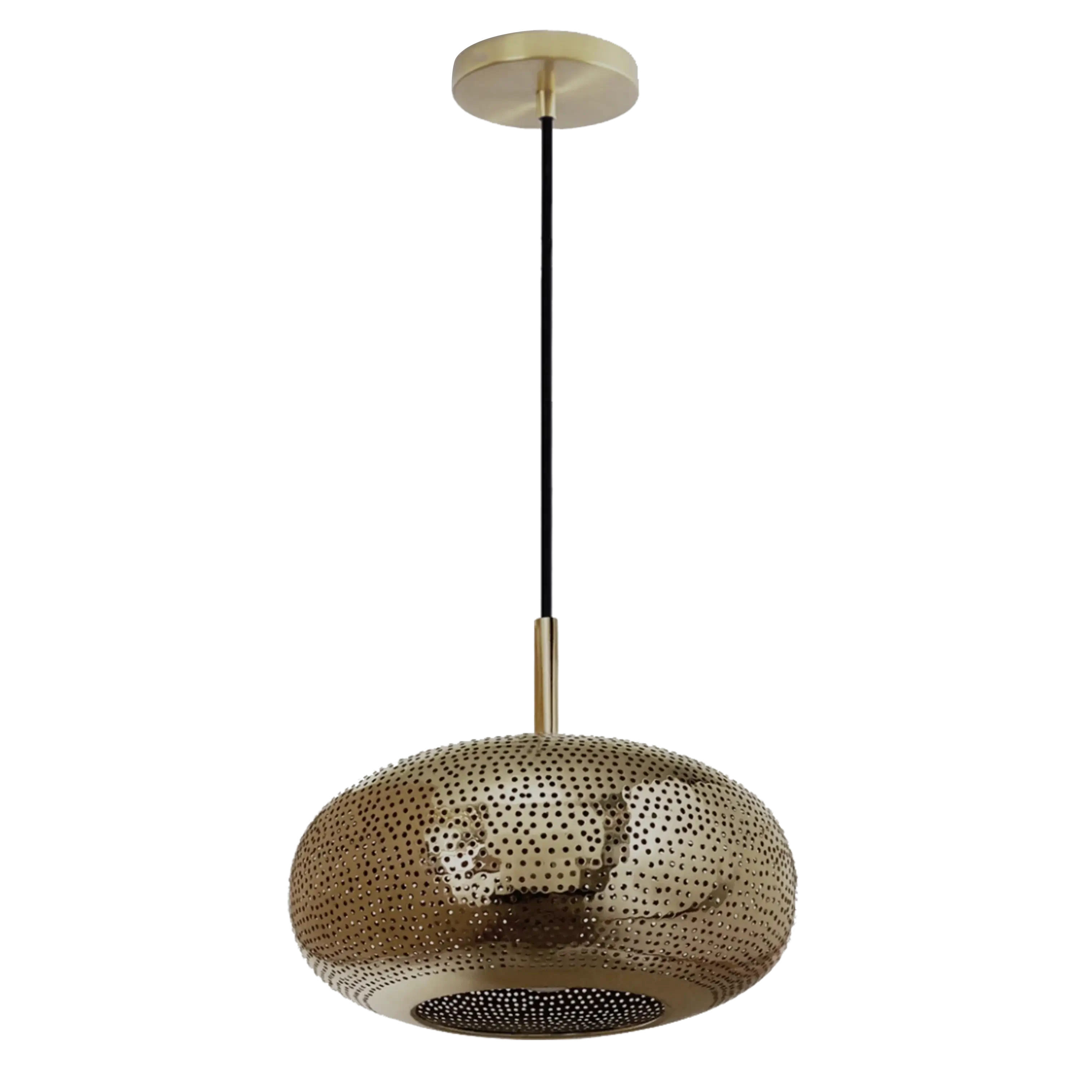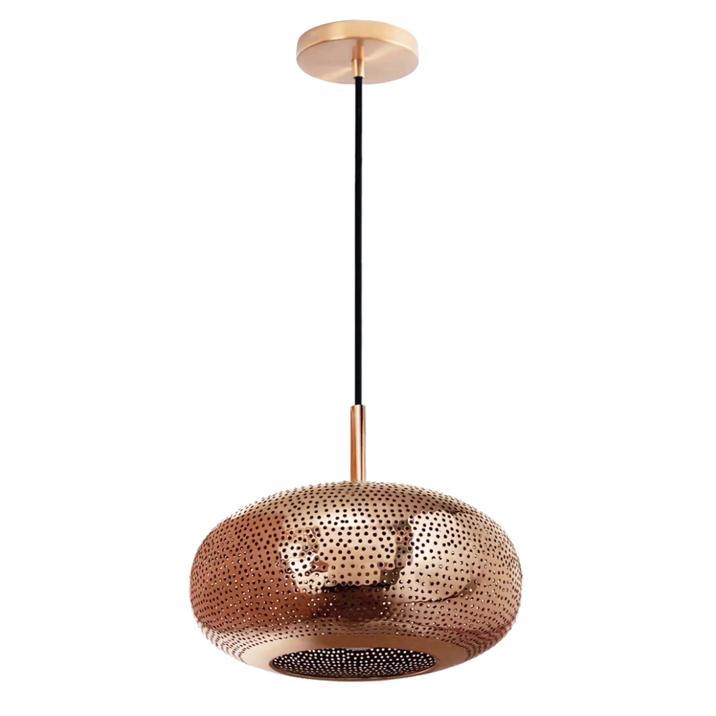 Lila is an oval-shaped pendant light, with a simple sculptural shape and its pierced shade casts brilliant shadows onto the ceiling and onto the space around it while creating a focused light at the base. It provides abundant, yet diffused light making it a perfect addition to dining and living spaces.