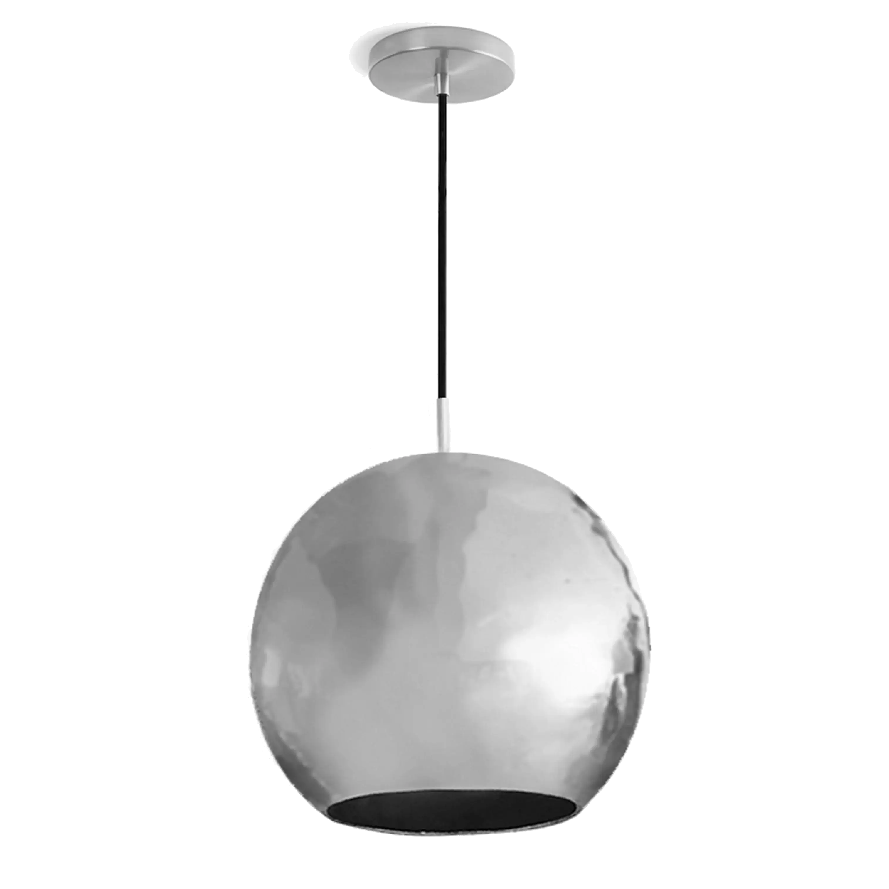 Mishal, a sphere shaped pendant light, designed to fit effortlessly into your home.This beauty looks stunning off and lit. It is suspended from a 5" round metal canopy by a single cloth-covered cord.The shade is beautifully handcrafted from semi-precious metals: brass, copper, and nickel silver that are polished to perfection and sealed with a topcoat to preserve the natural color of the metal.