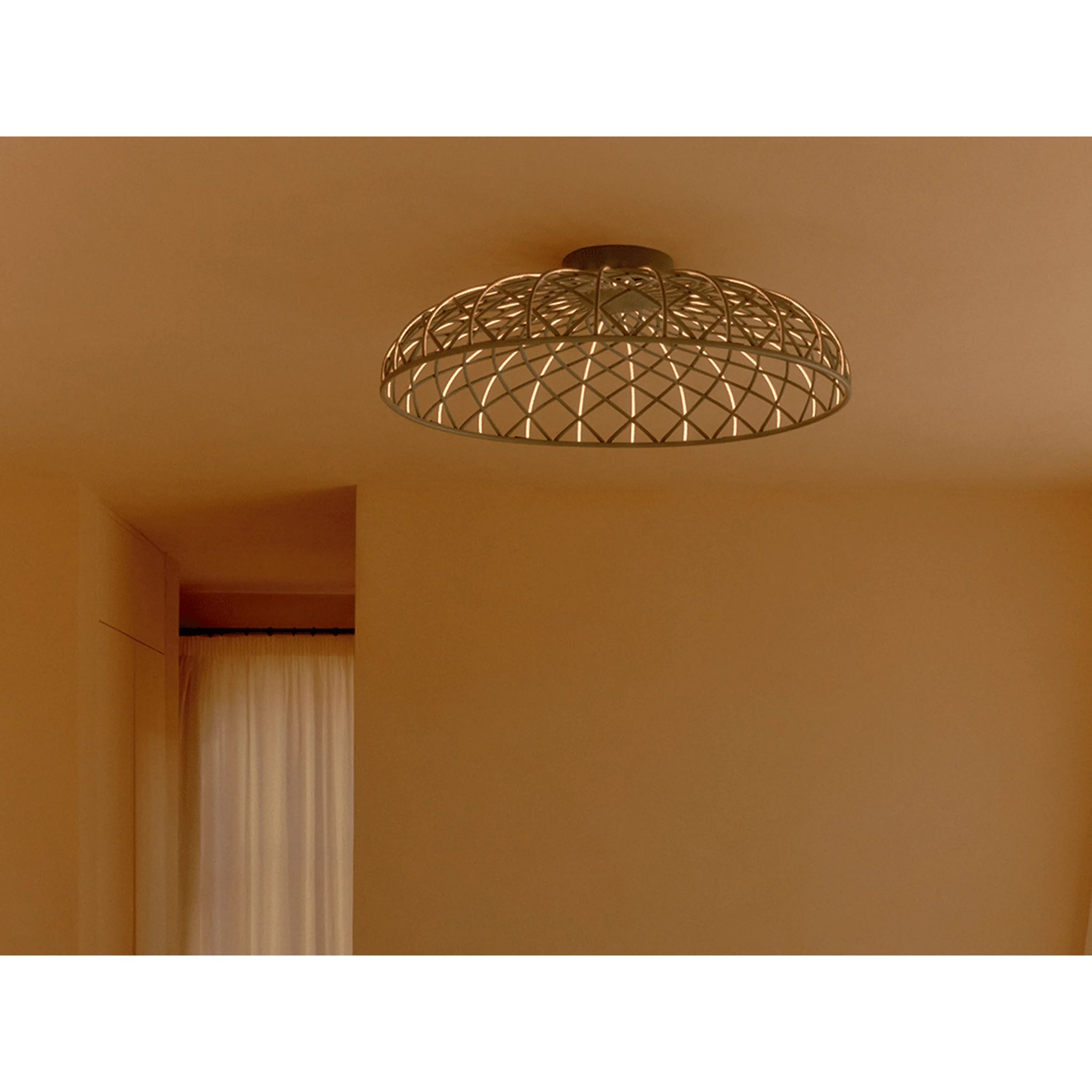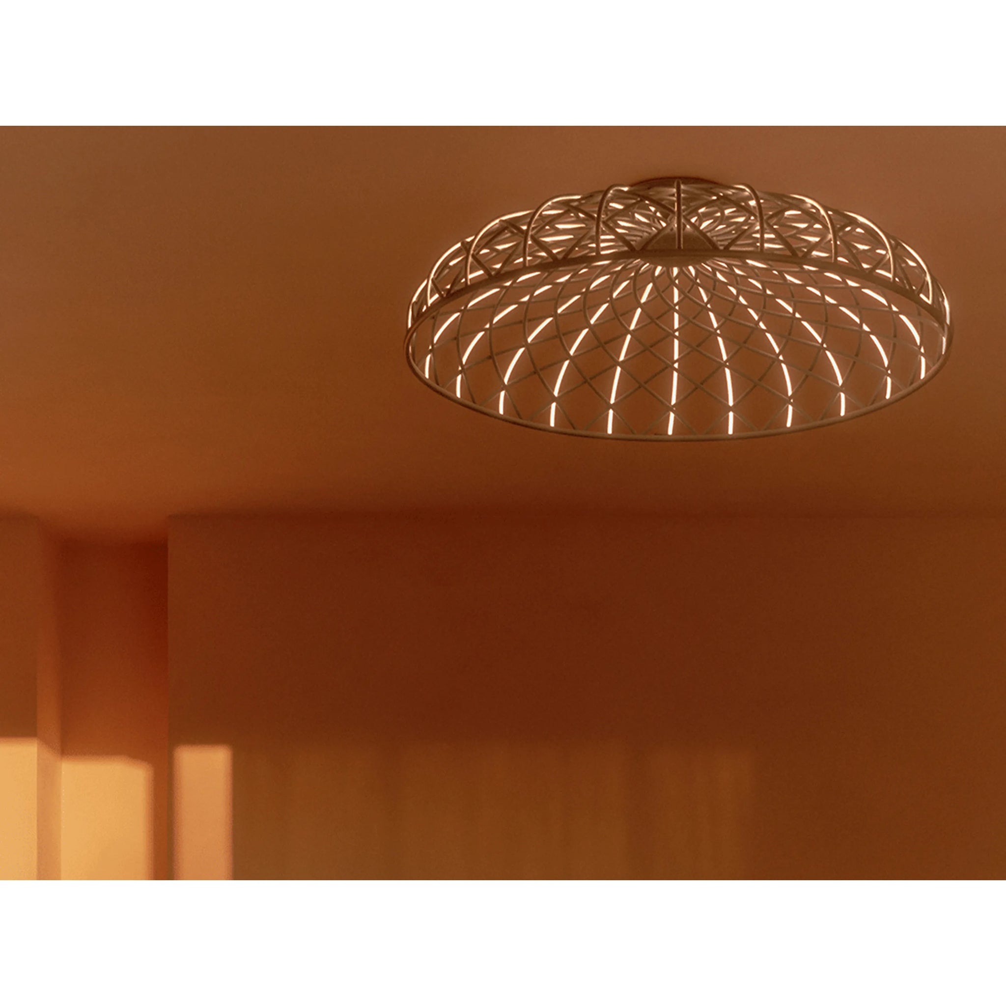 Woven tubes and luminous elements form an airy dome on the Skynest Pendant. Each light is powered by micro-connectors at the top and covered with woven mesh, with a white inner side for optimal light emission. The dome rim is fitted with an aluminum ring for structural integrity while a balance system at the top ensures stability. The canopy is plastic, painted in the same finish as the rest of the pendant. This pendant is environmentally friendly, its mesh made of recycled and recyclable fabric. It is also assembled without any glue, allowing it to be fully separated for recycling in the future. The Skynest is a great option for those seeking a beautiful, sustainable and innovative lighting solution.