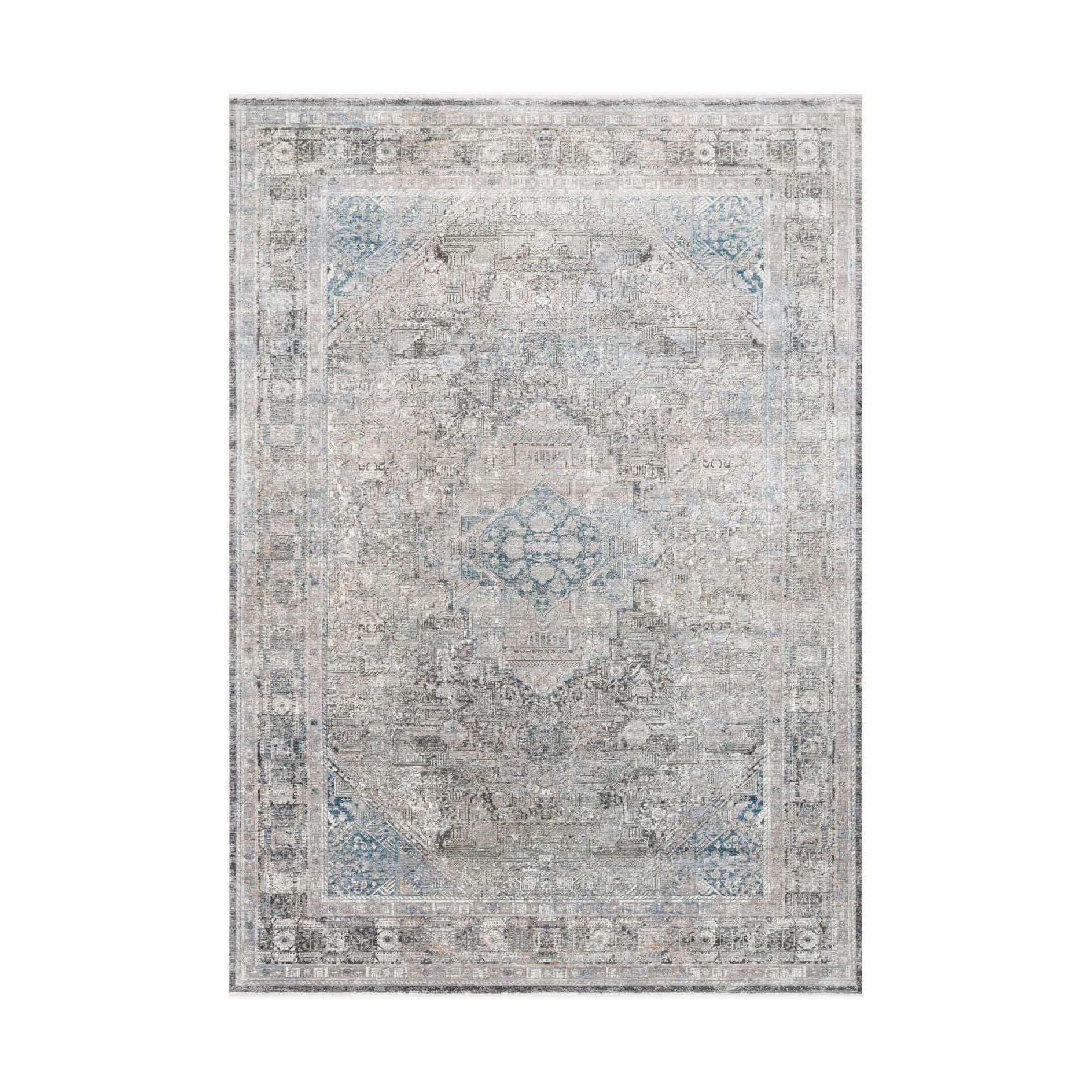 Gemma Gem 05 Silver Blue from the exquisite Gemma Collection. Crafted in Turkey, this rug combines viscose and acrylic to create a luxurious piece with a silky smooth texture and glistening sheen. Elevate your living space with a touch of sophistication, thanks to its traditional-inspired design elements and subtle patina that exudes elegance.