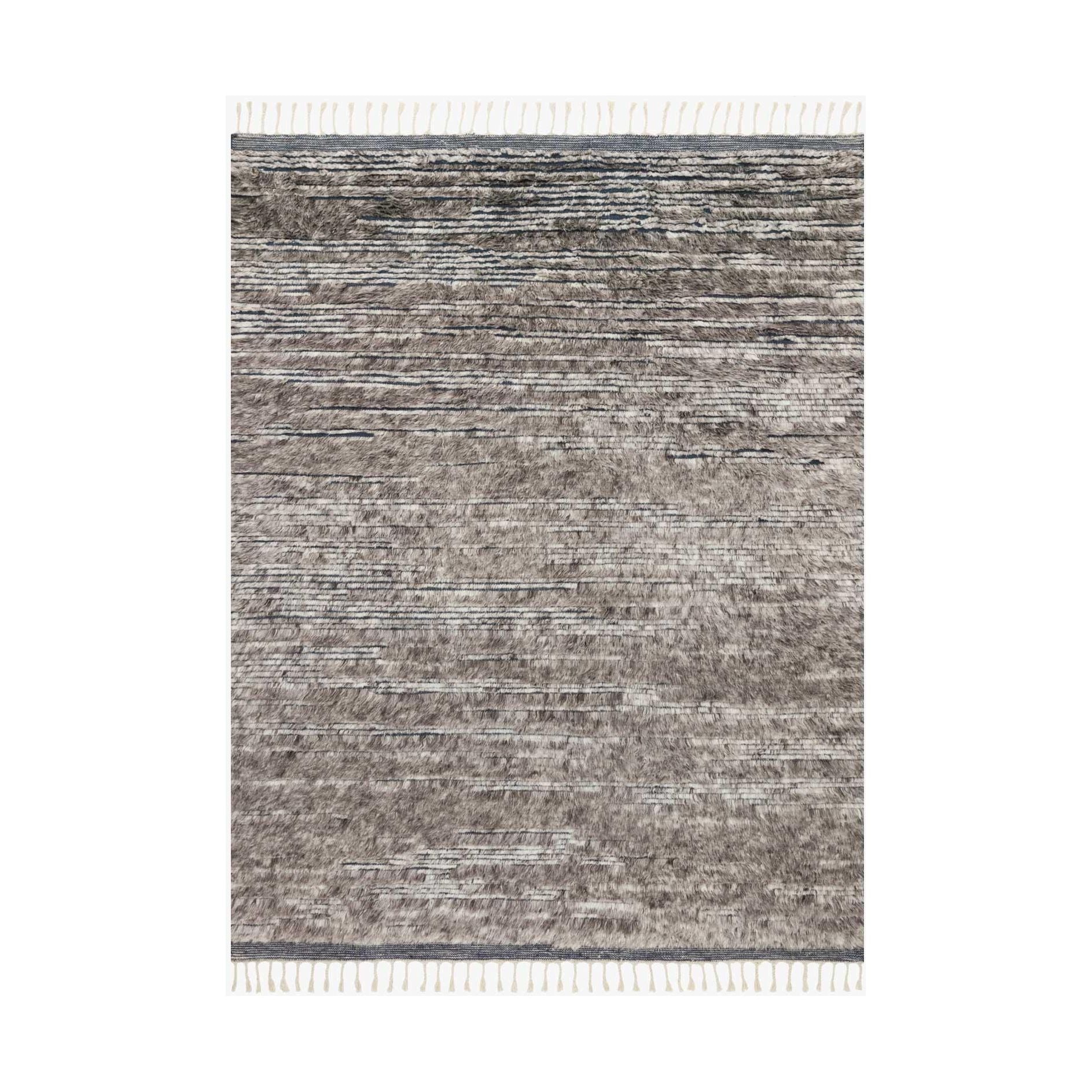 Khalid Kf 04 Pewter Ink rug, a stunning addition to your home decor inspired by timeless Moroccan design. Hand-knotted in India by expert artisans, this rug from the Khalid Collection boasts a soft pile made of 100% natural, undyed wool. The subtle variations in tones give each piece a unique character, making it a one-of-a-kind treasure for your space.