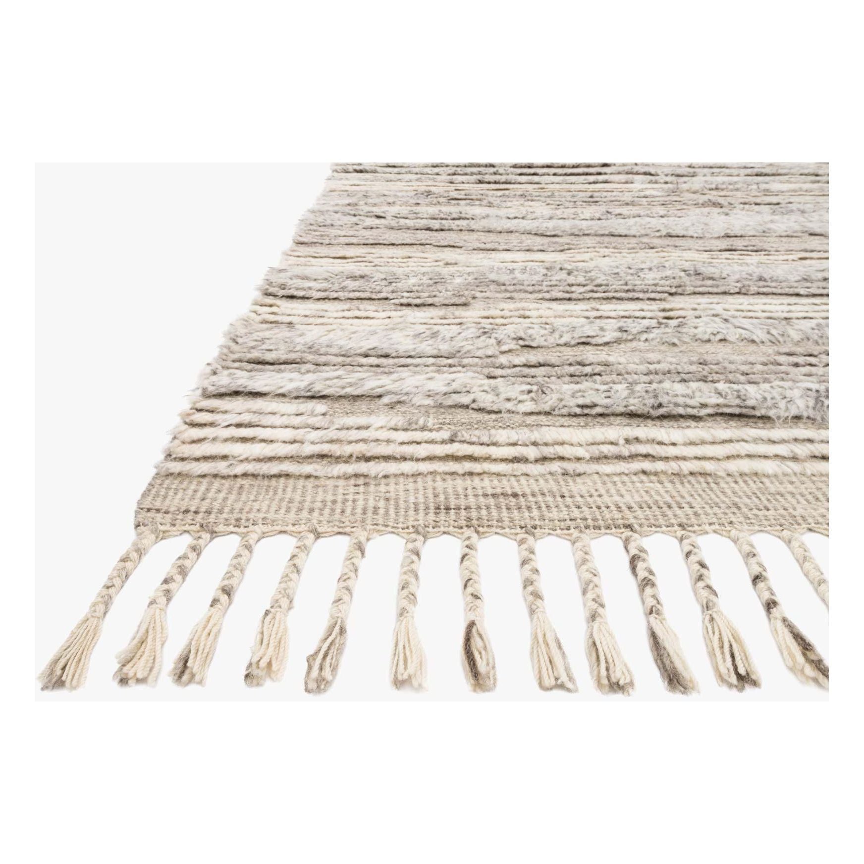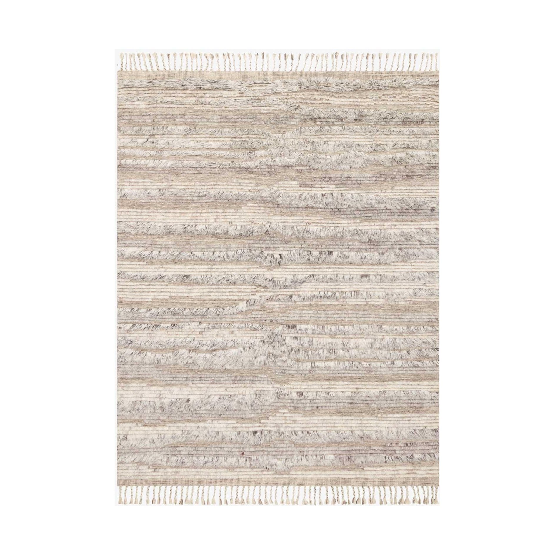 Khalid Kf 05 Natural Ivory rug, a blend of contemporary design and traditional Moroccan charm. Hand-knotted in India by expert artisans, this rug embodies timeless elegance. Crafted from 100% natural, undyed wool, each piece boasts unique variations in tones that add character and individuality. The soft pile offers both comfort and durability, making it a perfect addition to any living space. To complete its authentic look, each rug is beautifully finished with a meticulously designed fringe detail.