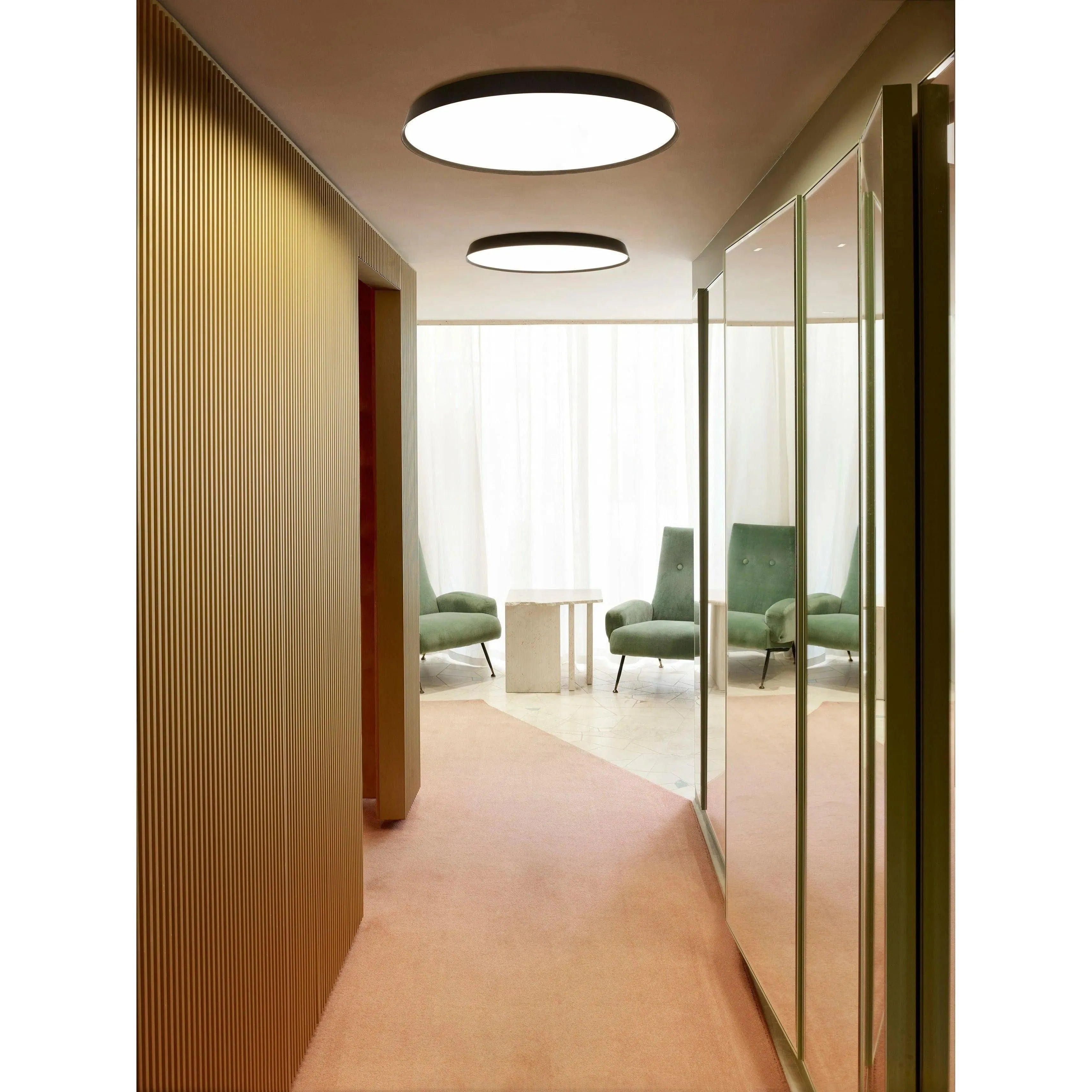 The external profile in brushed extruded aluminium conserves the slim original thickness, creating a surface almost flush with the wall. In spite of its extremely slender design, Compendium Plate provides extraordinary lighting efficiency combined with a clean form and extreme elegance.
