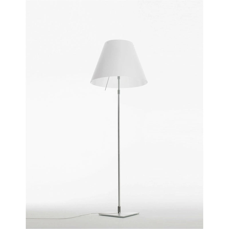 Aluminum stem. Interchangeable polycarbonate silkscreened shade.