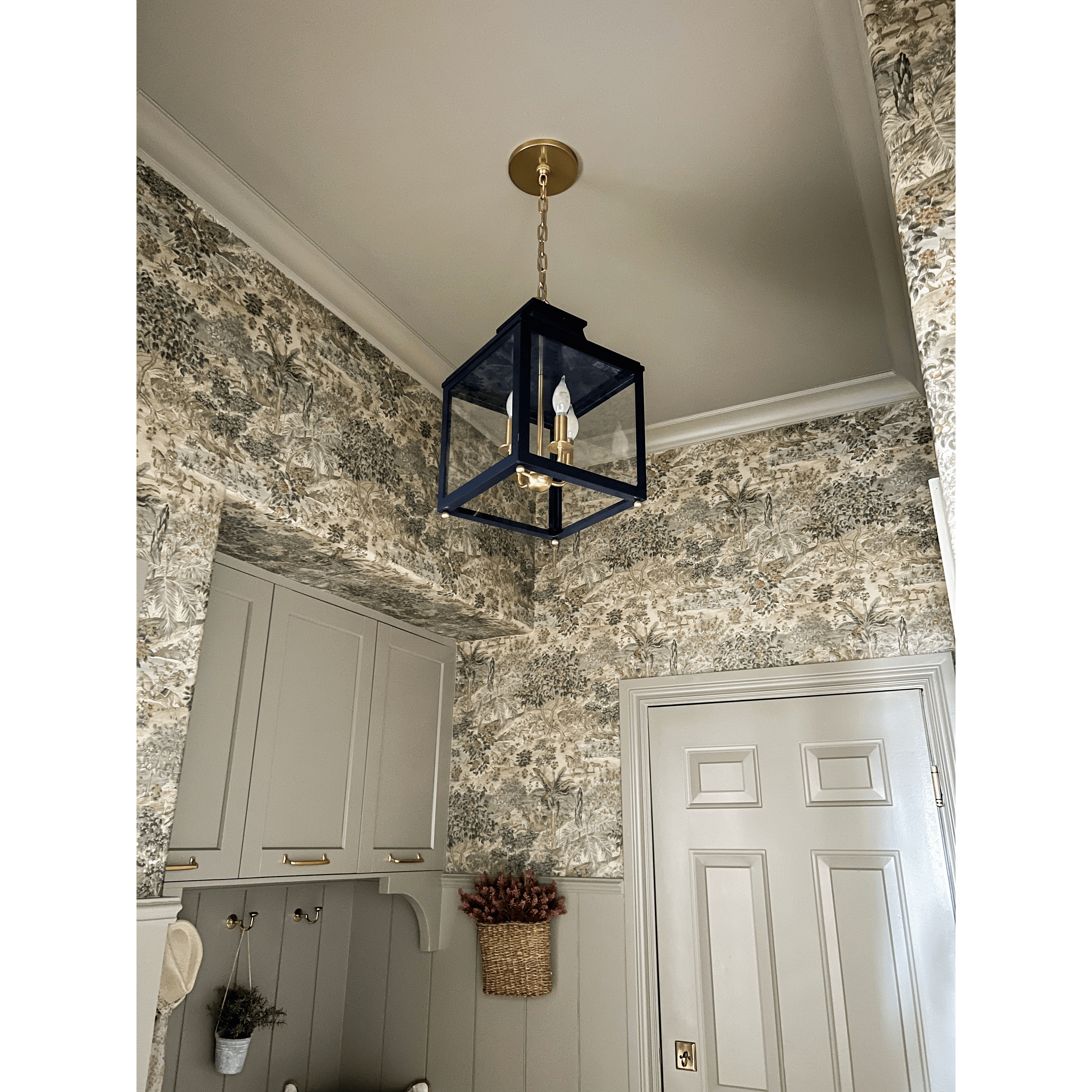 Mitzi Leigh Pendant—a refined lantern in a warm gold finish that balances classical form with modern restraint. Its clean-lined, square silhouette and softly pagoda-inspired top create a strong architectural presence while remaining quietly elegant.