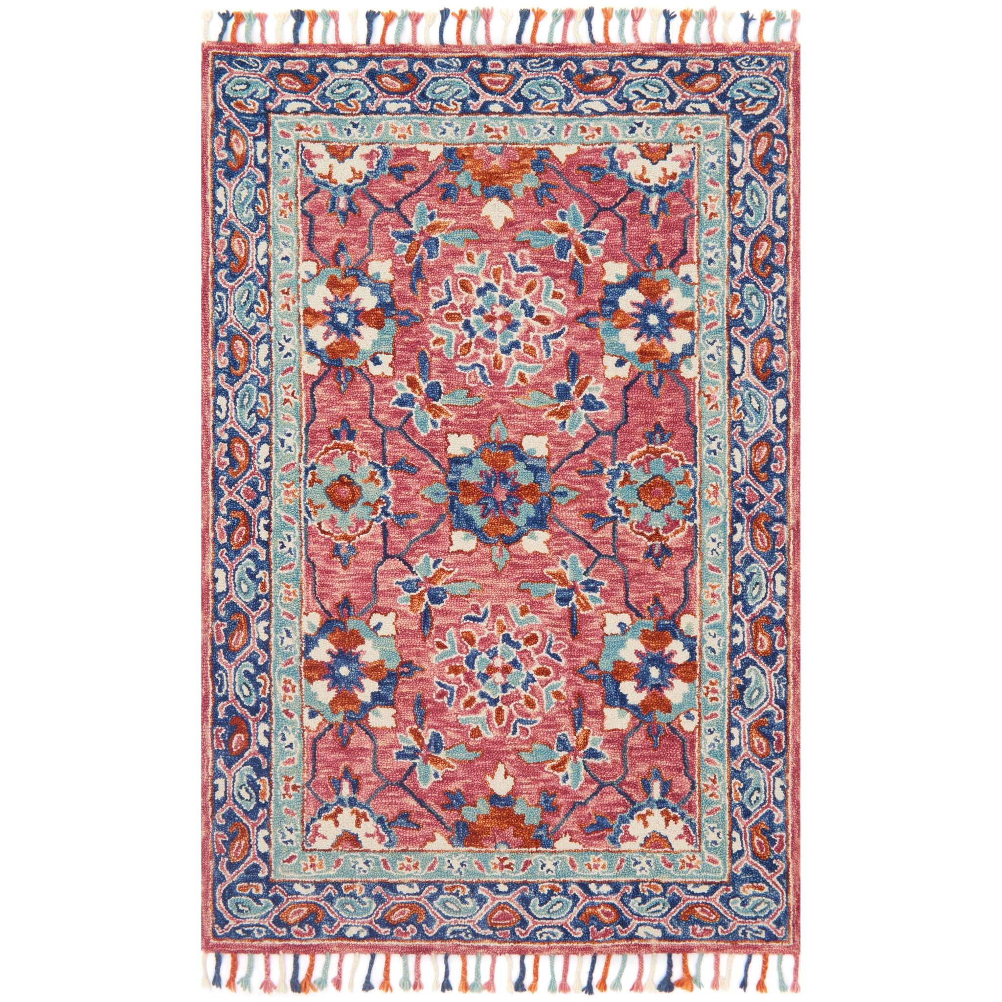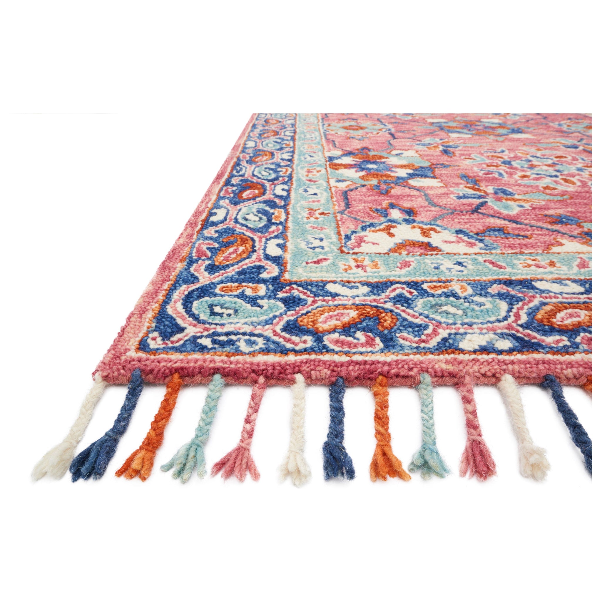 exquisite Zharah Zr 03 Rose Denim rug, handcrafted by talented artisans using premium 100% wool. This stunning piece is part of the Zharah Collection, known for its vibrant colors and eye-catching patterns that effortlessly make a bold statement in any space.