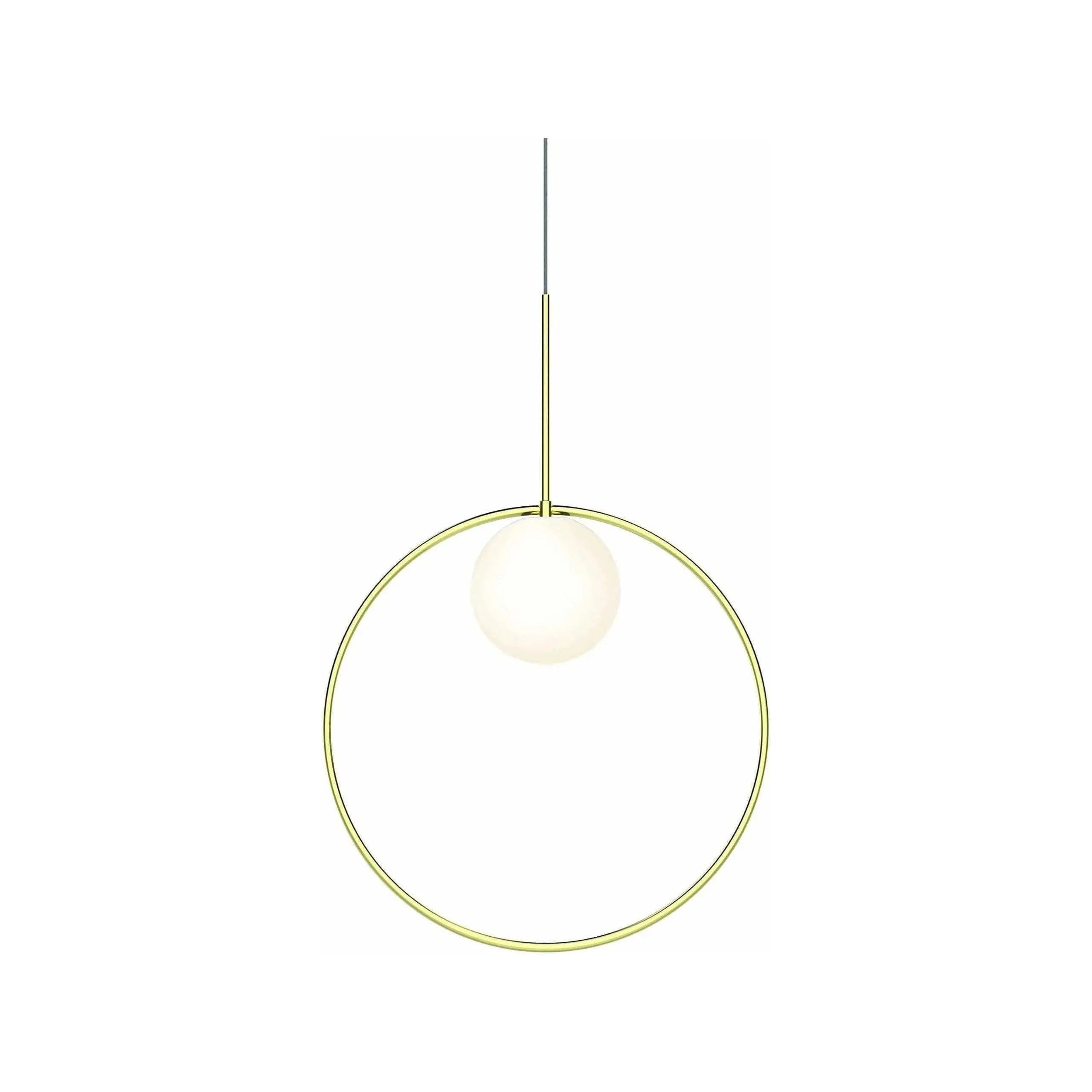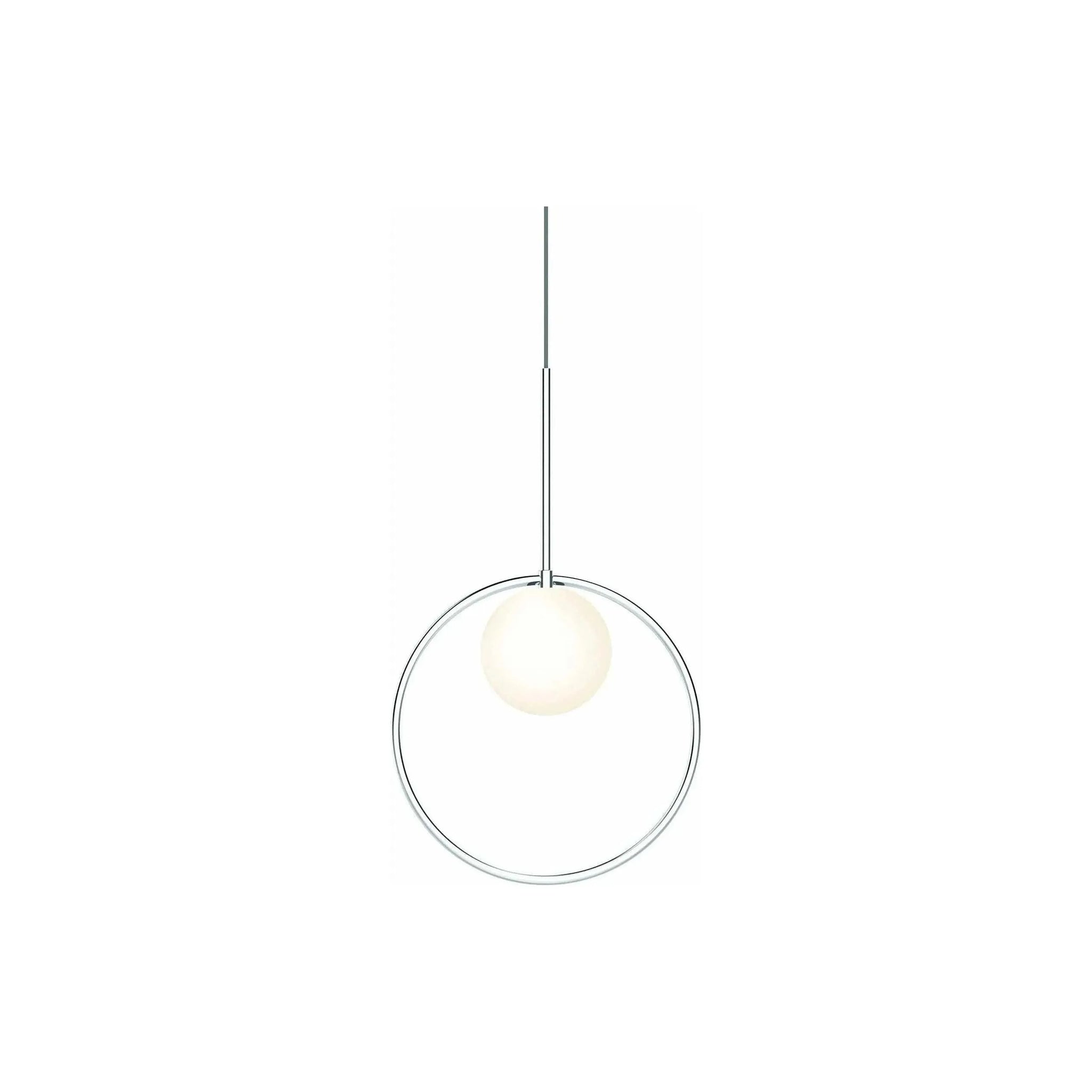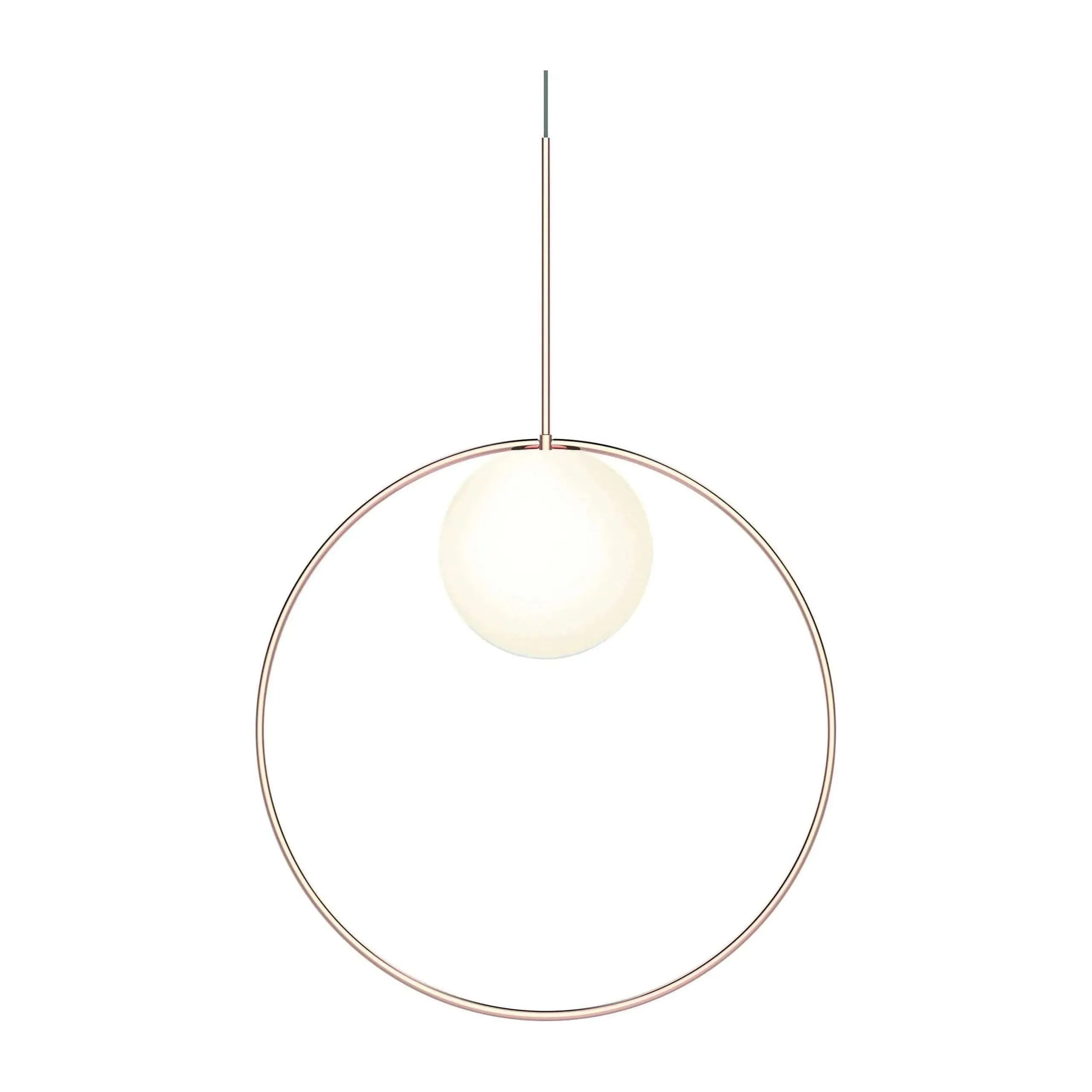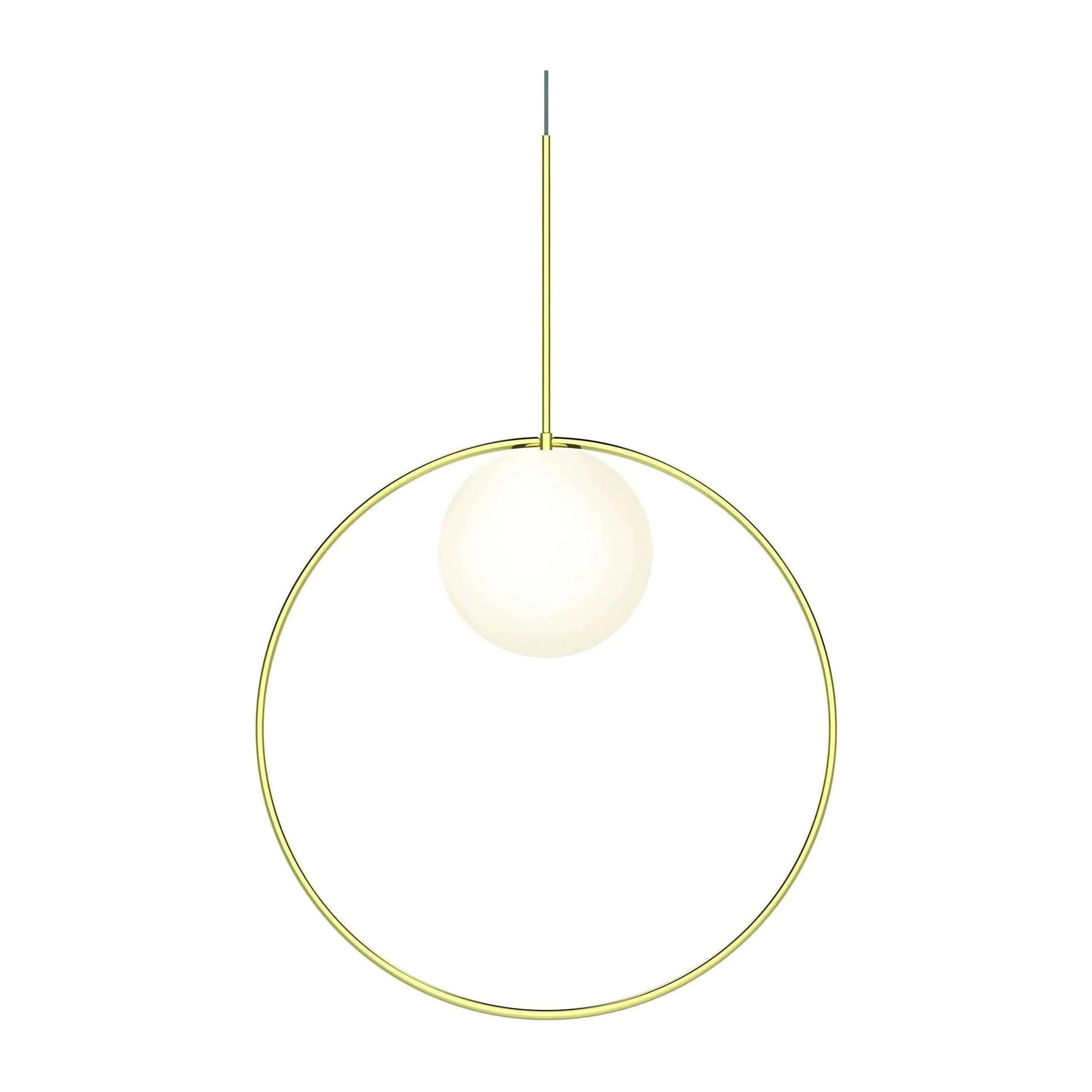 Precision-driven form meets luminous simplicity. The Bola Halo Pendant from Pablo Designs frames a single opaline globe within a slender metal halo, creating a balanced sculptural presence that reads equally well in residential and commercial projects.