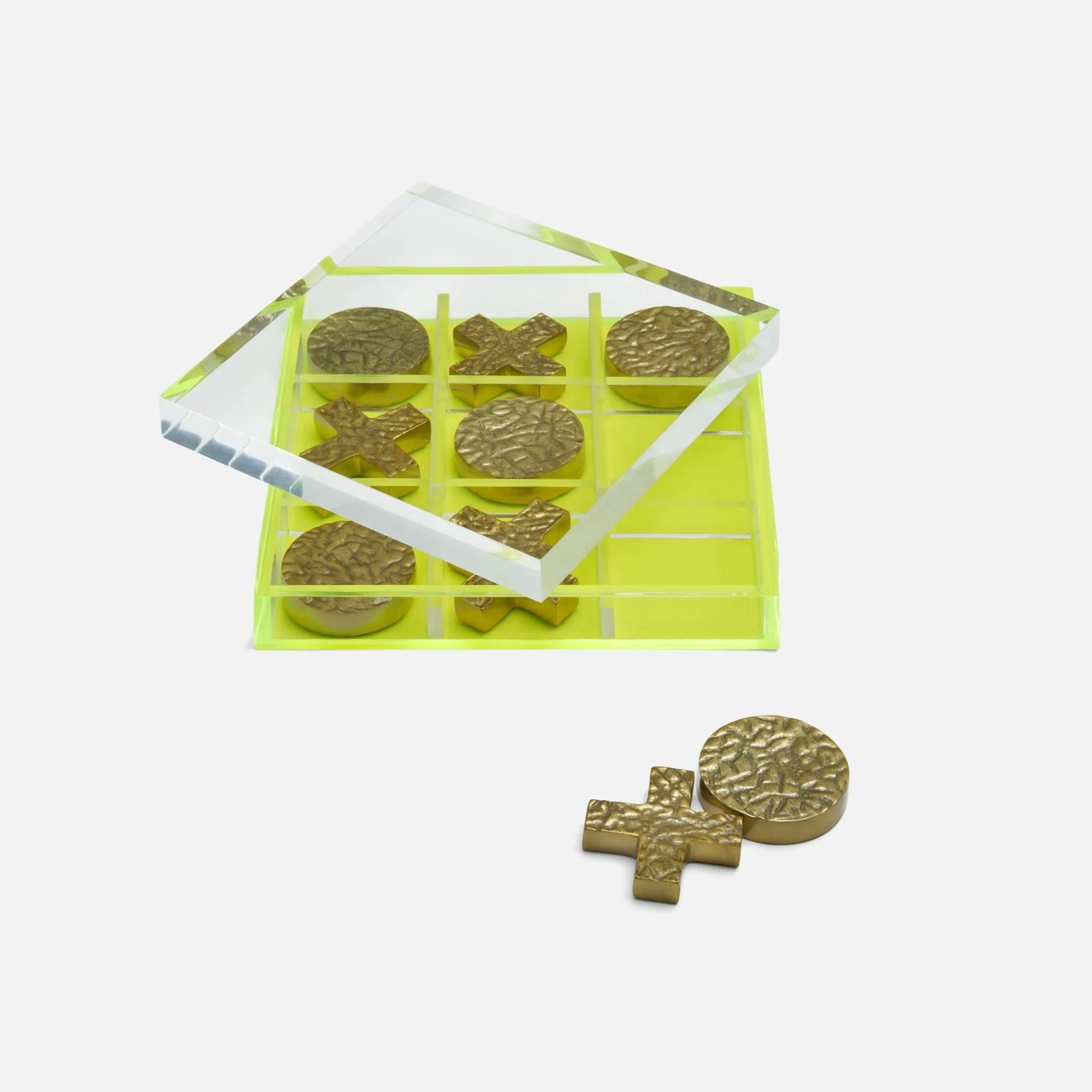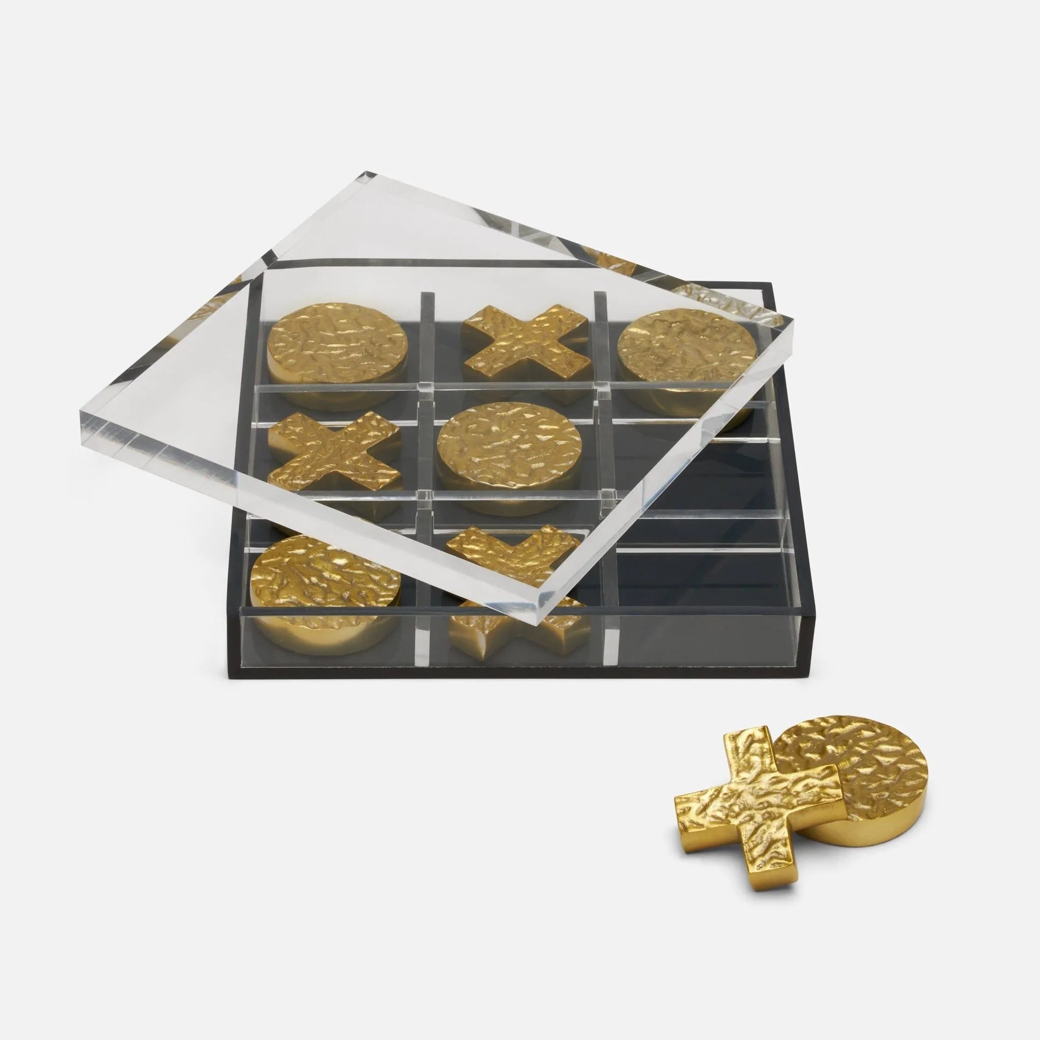 Tic tac toe gets a glow-up with textured gold pieces and cool acrylic bases.
