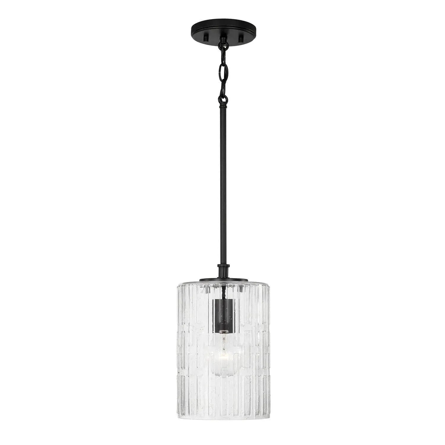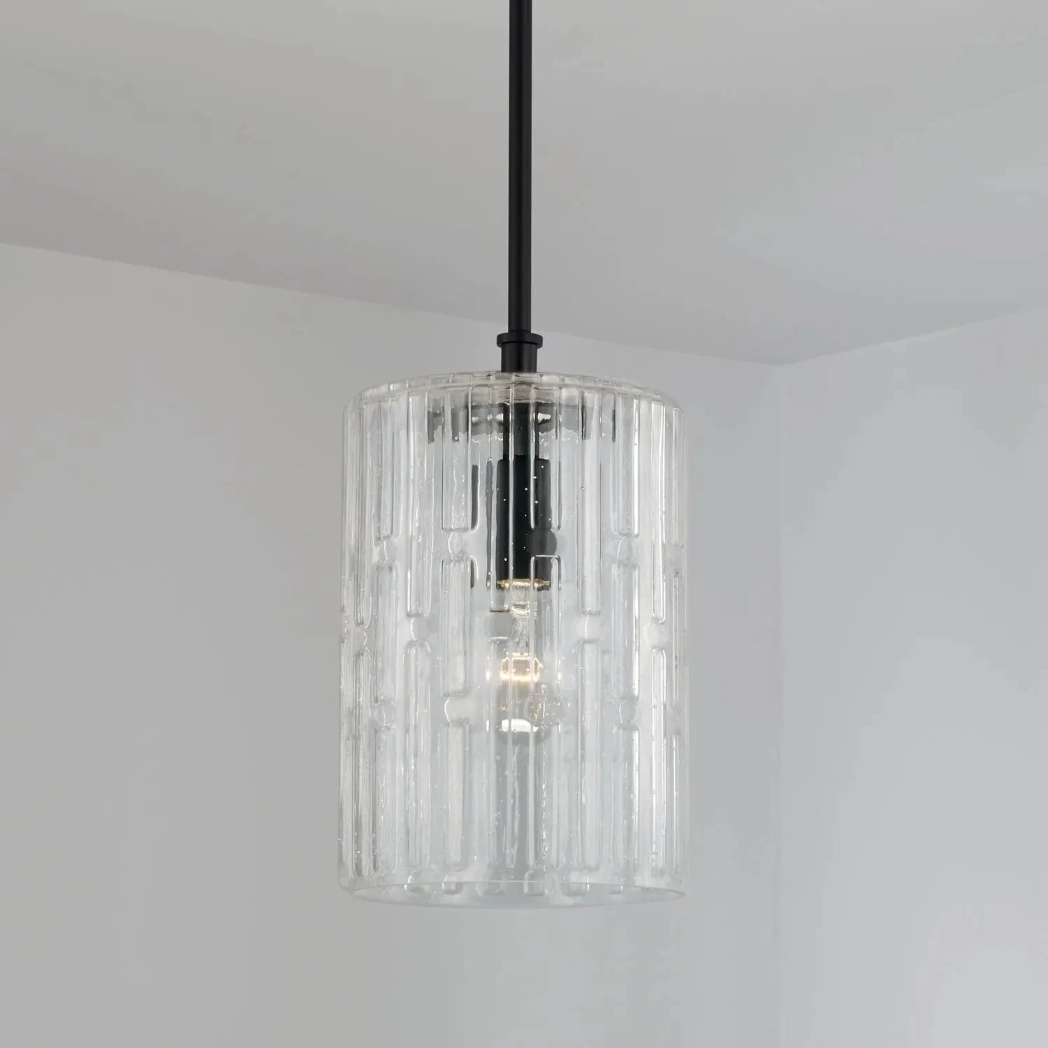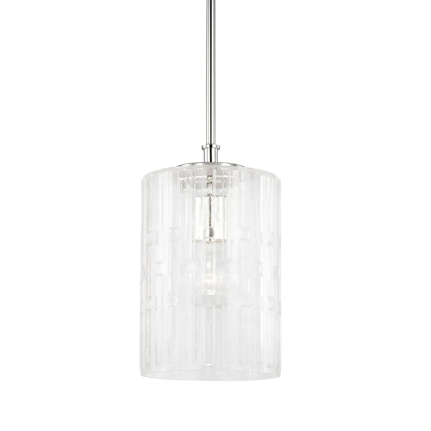Simple and stunning, the Emerson 1-Light Pendant makes a striking statement in any room. The Aged Brass finish highlights the embossed pattern on seeded glass, allowing light to shimmer with warmth and character.