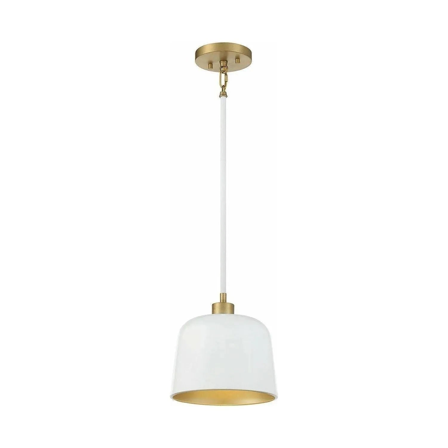 Crafted with a smooth matte exterior and a warm gold-finished interior, this one-light pendant contrasts technical restraint with luminous depth. The slender suspension rod and understated brass canopy demonstrate precise craftsmanship and modern hardware detailing suited to professional projects.
