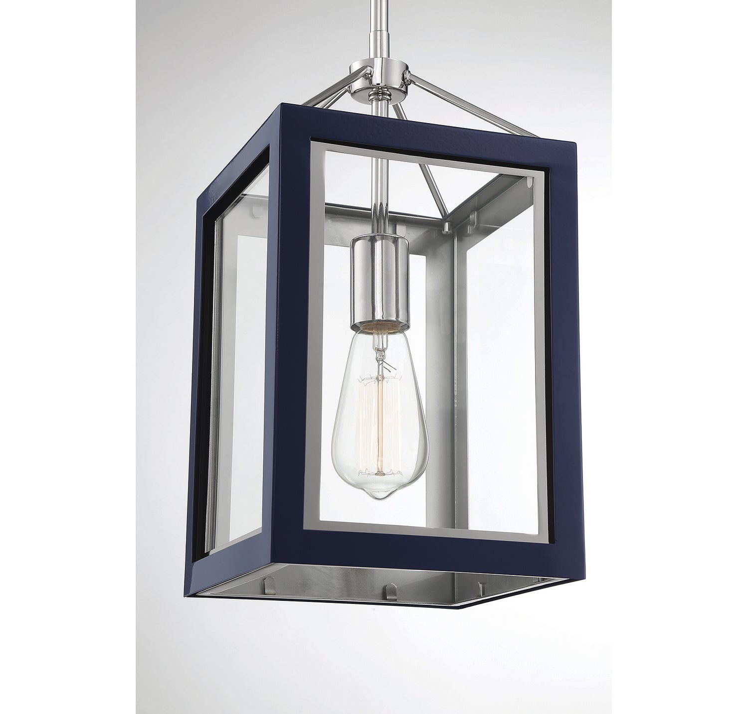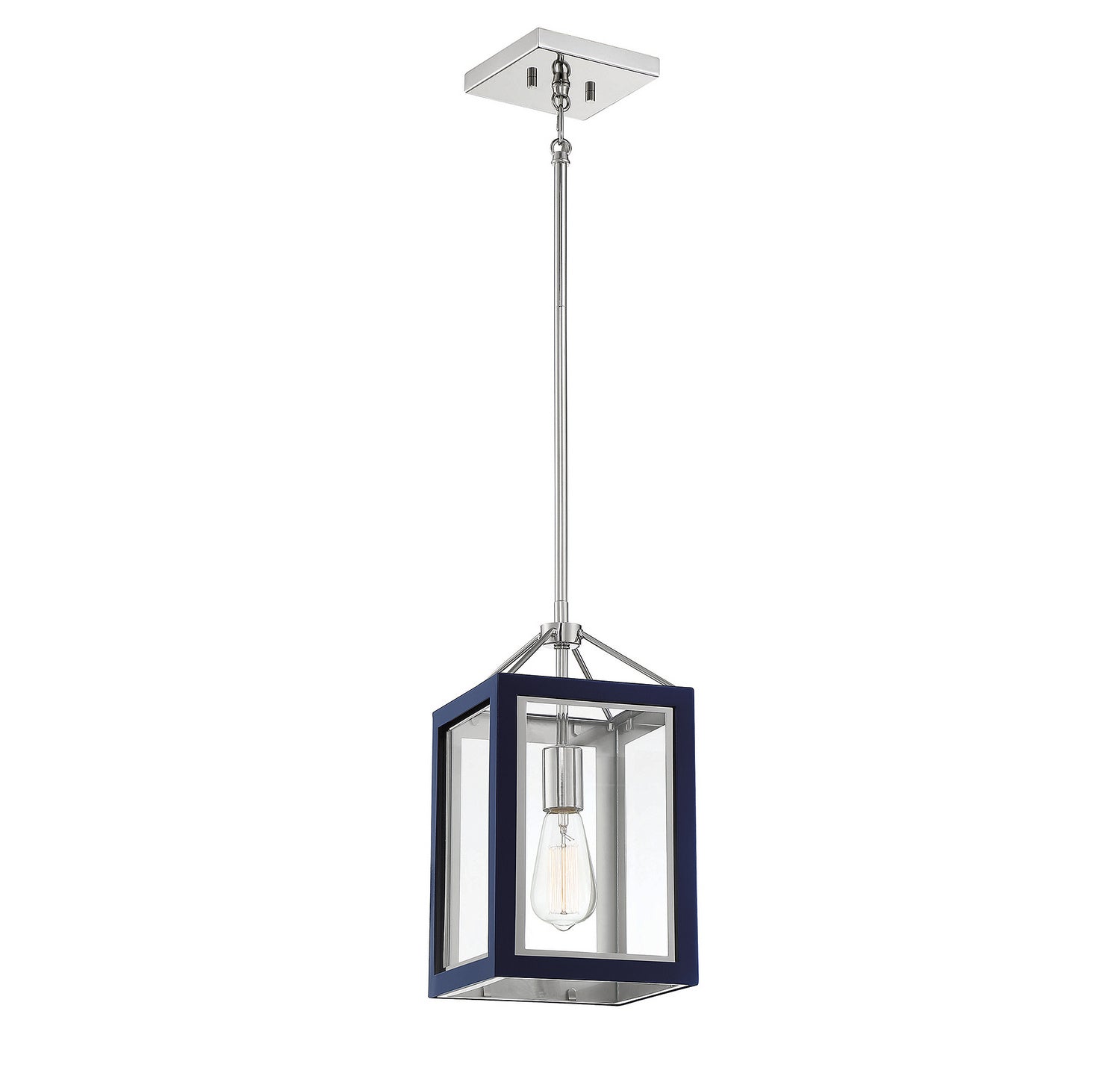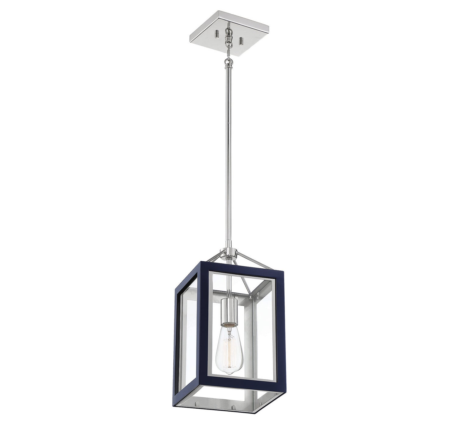 The Carlton Lantern brings ambient, inviting illumination to social spaces while its open lantern frame showcases the bulb, creating a warm focal point without overwhelming the room. The navy frame and glass panels offer a versatile aesthetic that complements coastal, transitional, and contemporary interiors. Built with durable metal construction and a thoughtful hanging system, this pendant is designed for long-lasting use and easy cleaning, helping you achieve a stylish, cohesive look throughout your home.