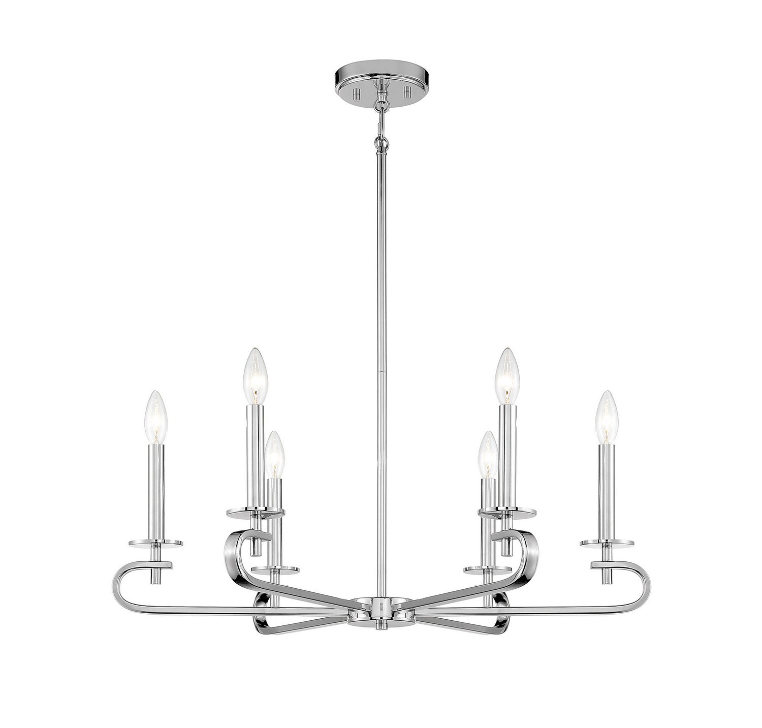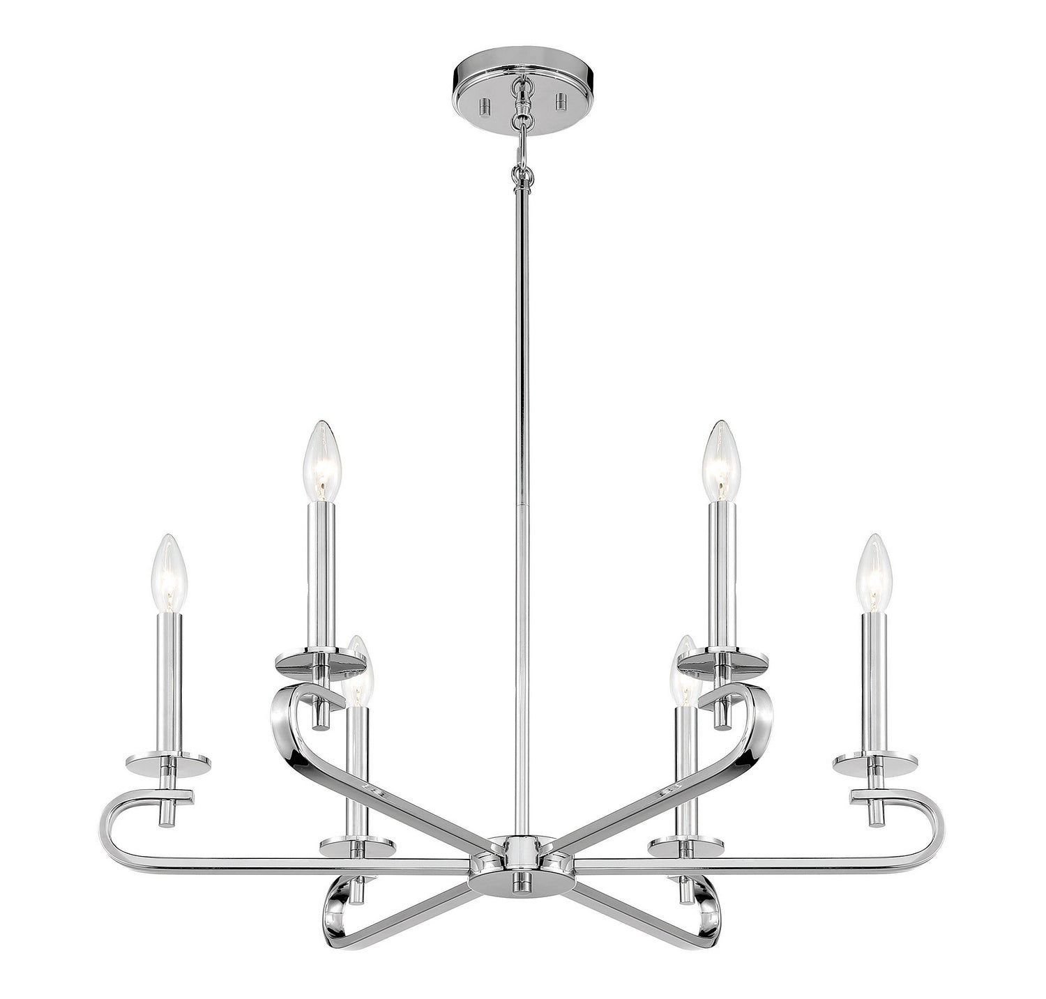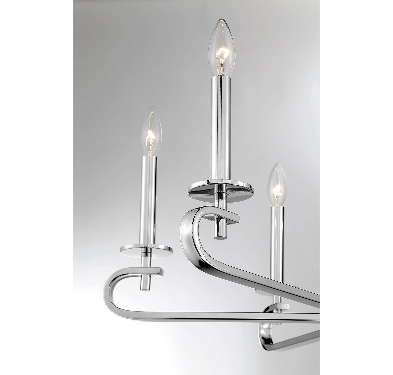 Torino Chandelier from Savoy House brings clean, contemporary elegance to dining areas and foyers. Designed by Savoy House, a trusted name in quality lighting, this chandelier pairs a polished nickel finish with candle-style bulbs for a timeless, modern look.