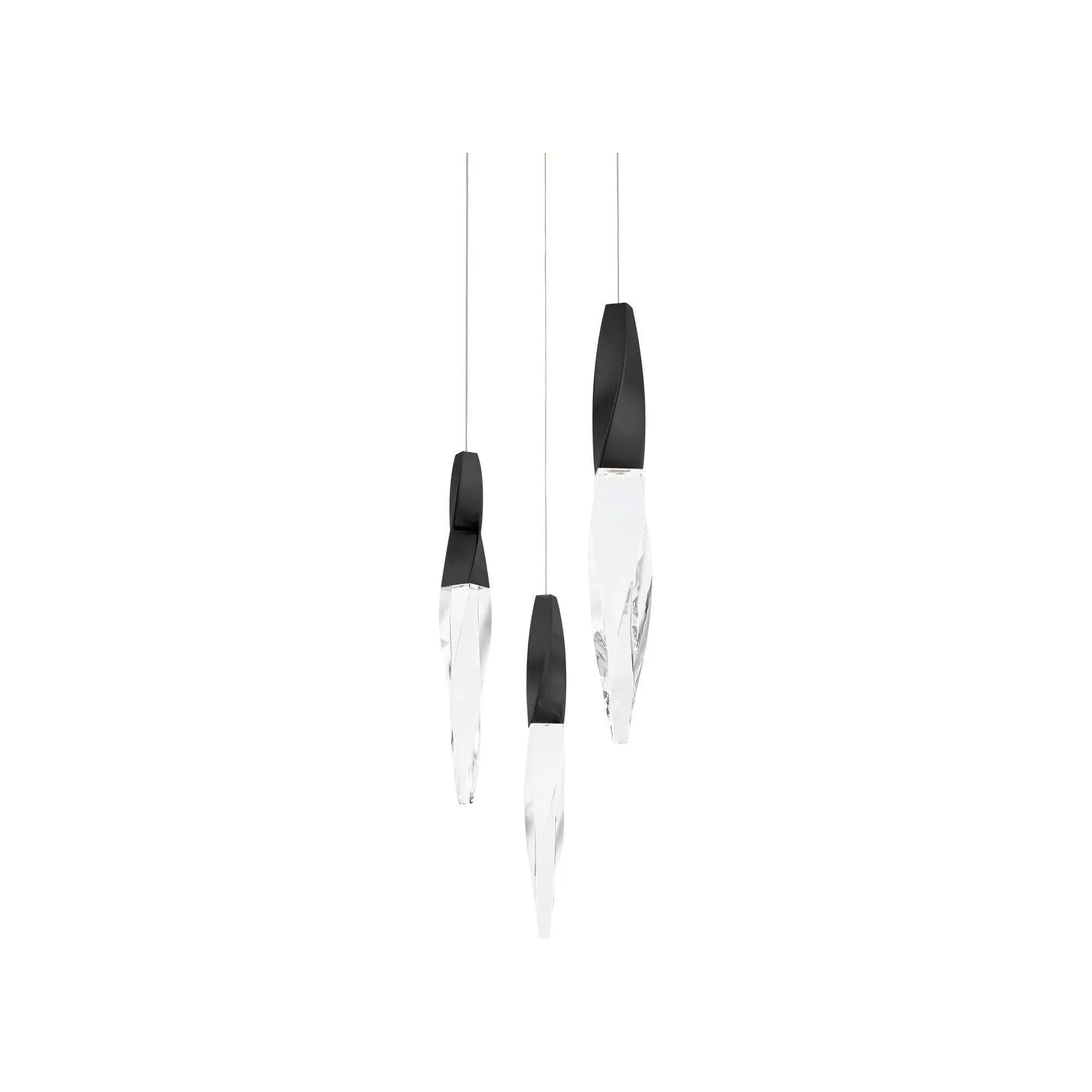 A subtle twist of luxe. Kindjal is an exquisite optic crystal dagger that twists to a point from a cohesive metal fitting that conceals a powerful LED that provides ample downlighting. Stylish, textured materiality.