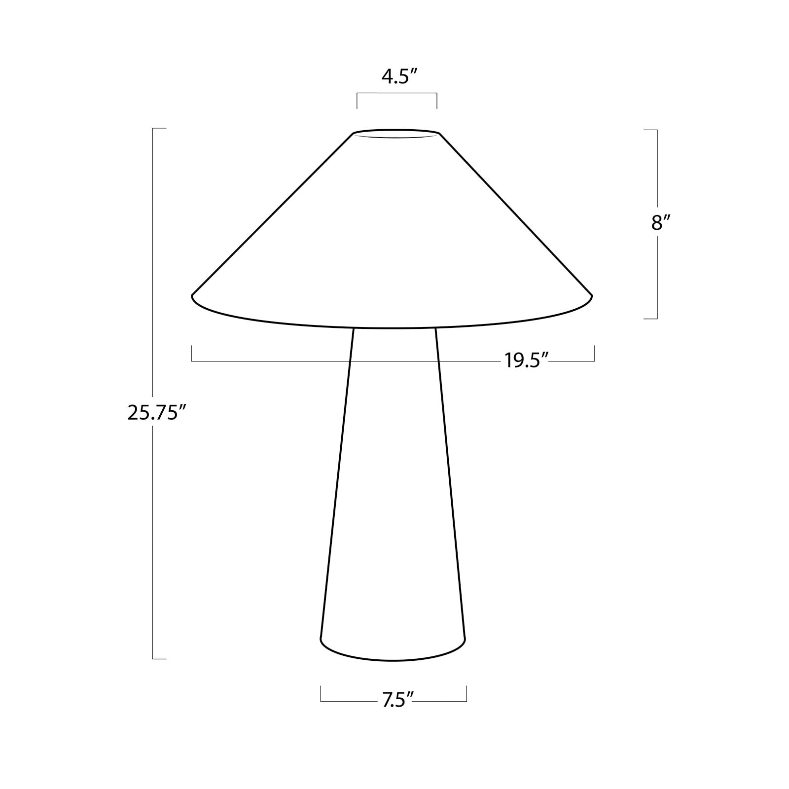 The Koda Ceramic Table Lamp is accented with horizontal throwing lines that add handcrafted texture and depth. Topped with a distinctive triangular coolie shade, this lamp introduces a fresh play on proportion.