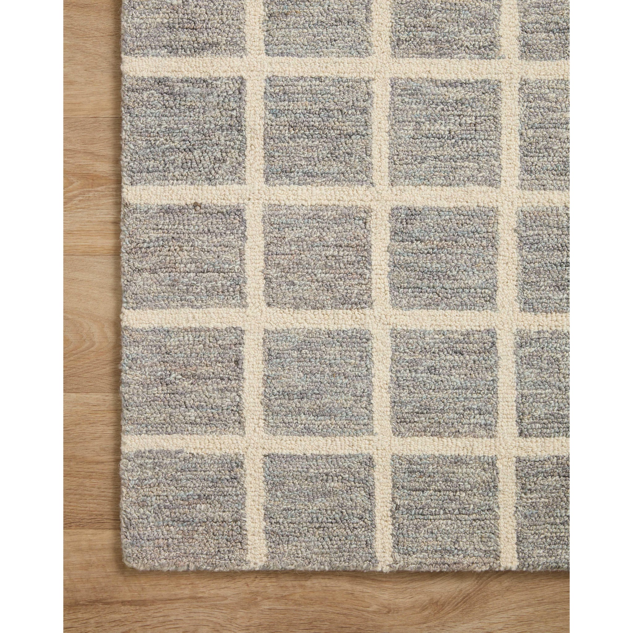 Introducing Polly Pol 05 Slate Ivory - a stylish addition to the Chris Loves Julia x Loloi collaboration. This rug from the Polly collection is hand-tufted using a blend of wool and jute pile, offering a modern twist on classic design elements. The striking gridded patterns are elegantly complemented by a soothing neutral color scheme, making Polly a versatile choice for any space.