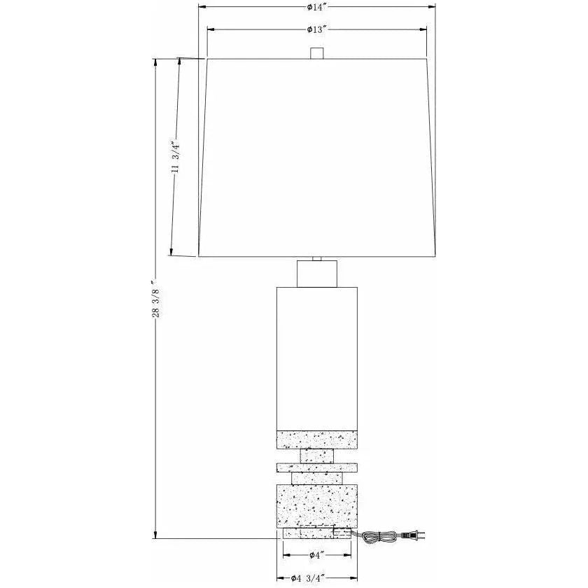 A delicately balanced combination of cylinders and discs create an interesting silhouette in crystal and antique brass finished metal. The table lamps modern look is softened by an off-white cotton tapered drum shade. Also available in an black matte finish.