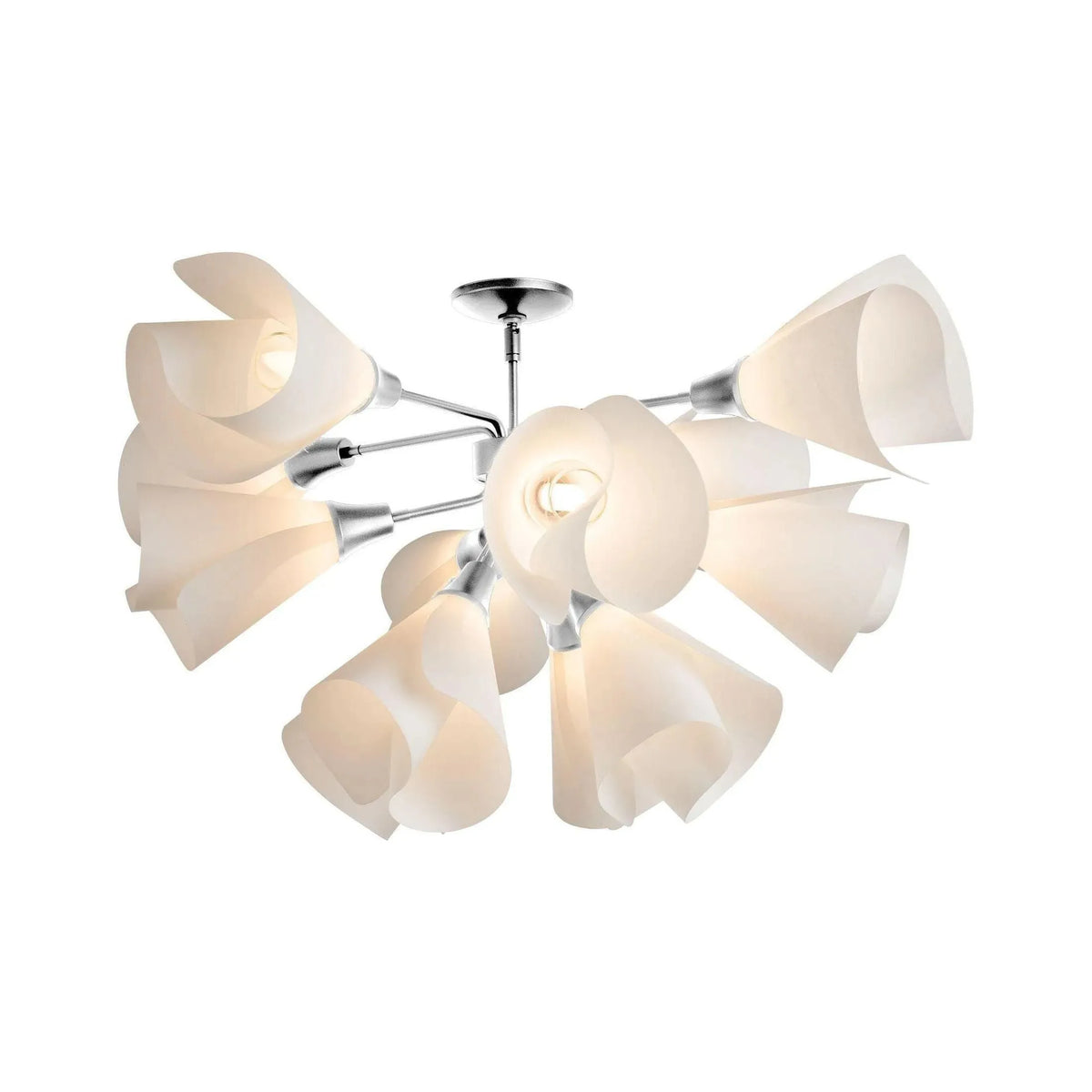 Twelve light sputnik semi-flush ceiling light with Spun Frost folded shades.