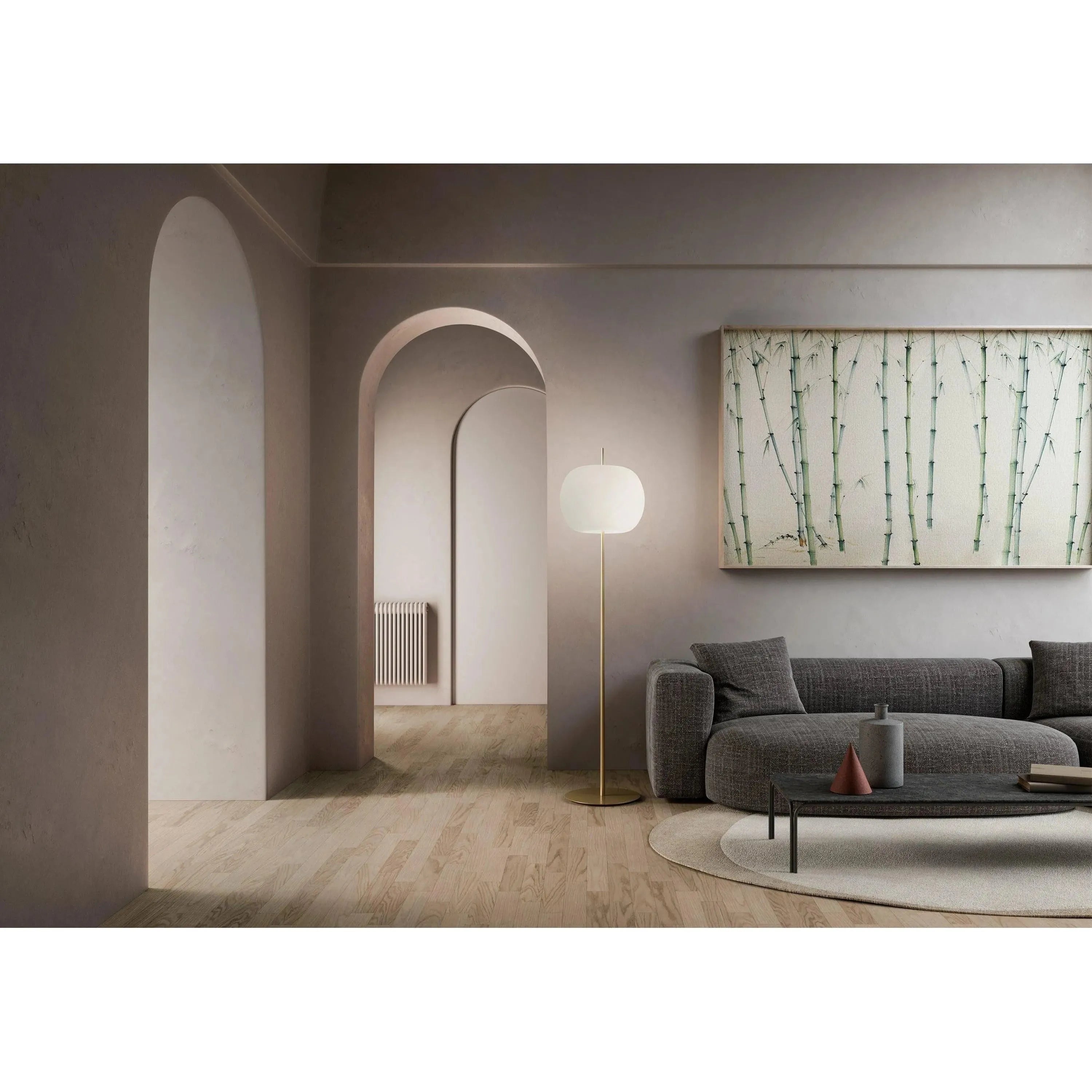 A long, metal rod pierces the soft glass diffuser. The evocative intensity of the simplest and purest of shapes for an imposing lamp with a sophisticated and discrete presence.