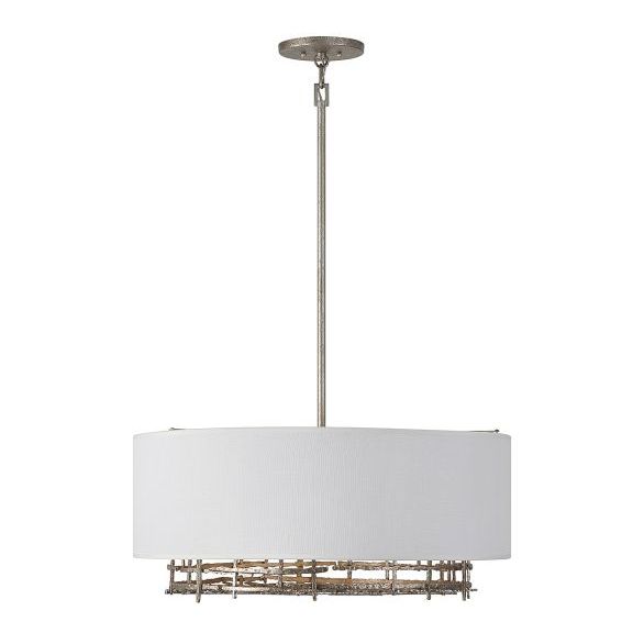 This Savoy House Cameo 6-light chandelier is proof that opposites attract. Its soft white linen shade and rough, nature-inspired detailing finished in champagne luxe create a perfect pair. Cameo is 12.5" in height and 28" in width. It uses 6 candelabra size bulbs of up to 60 watts per bulb (bulbs not included). Comes with four 12" downrods and one 6" downrod.